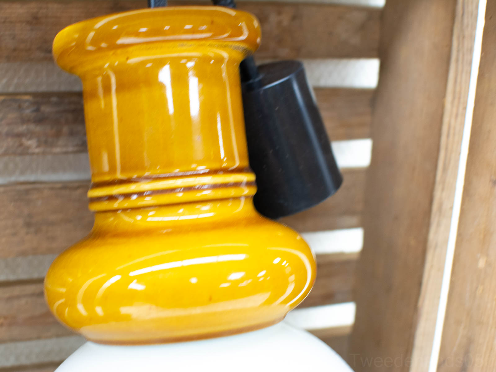 Met stenen houder. Geel/bruin. Grote lamp 19 cm