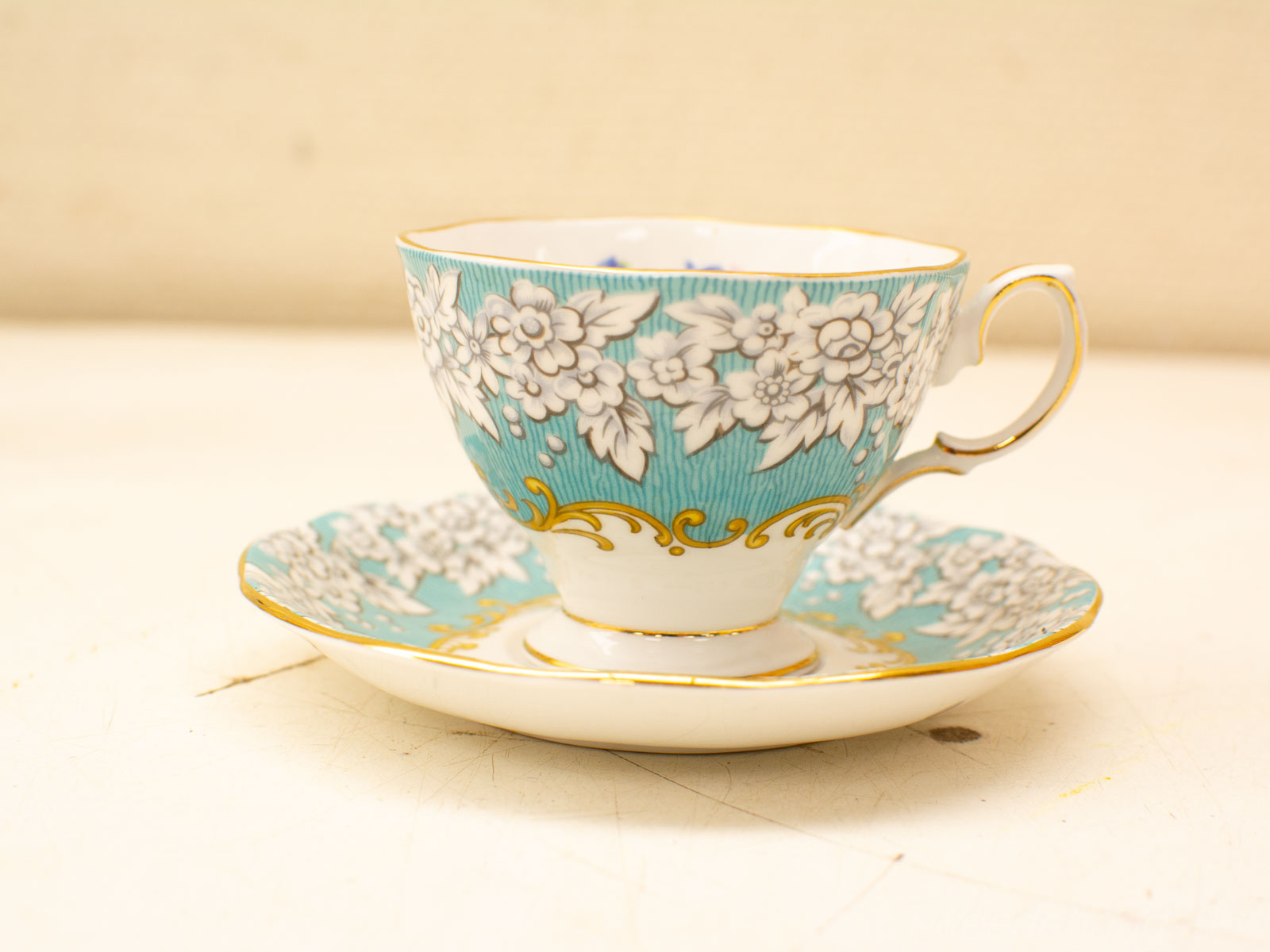 ze hebben lichte slijtage op het geverfde randje diameer bovenkant opening van het kopje 8 cm hoogte 6 cm diameter van het schoteltje 12,5 cm