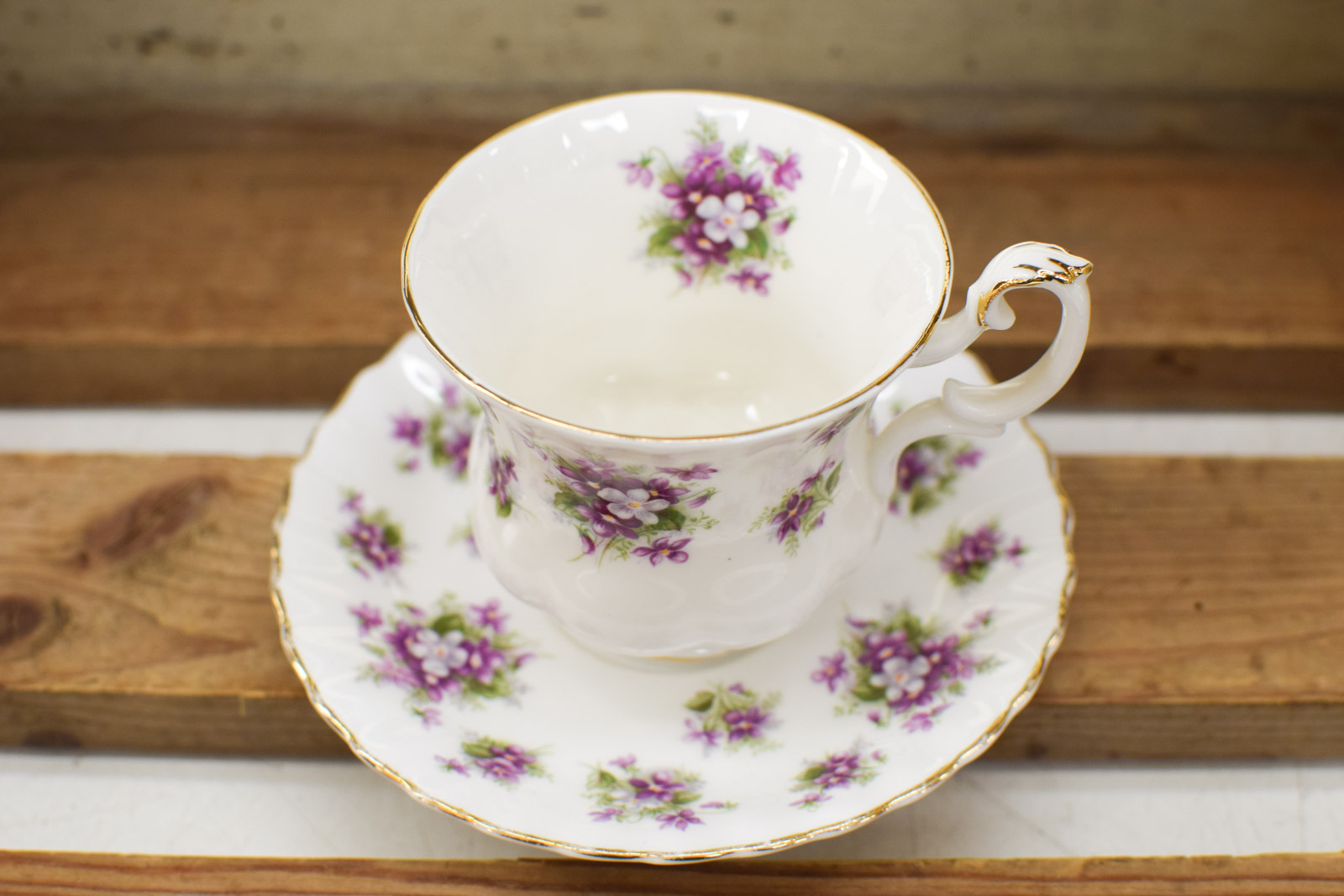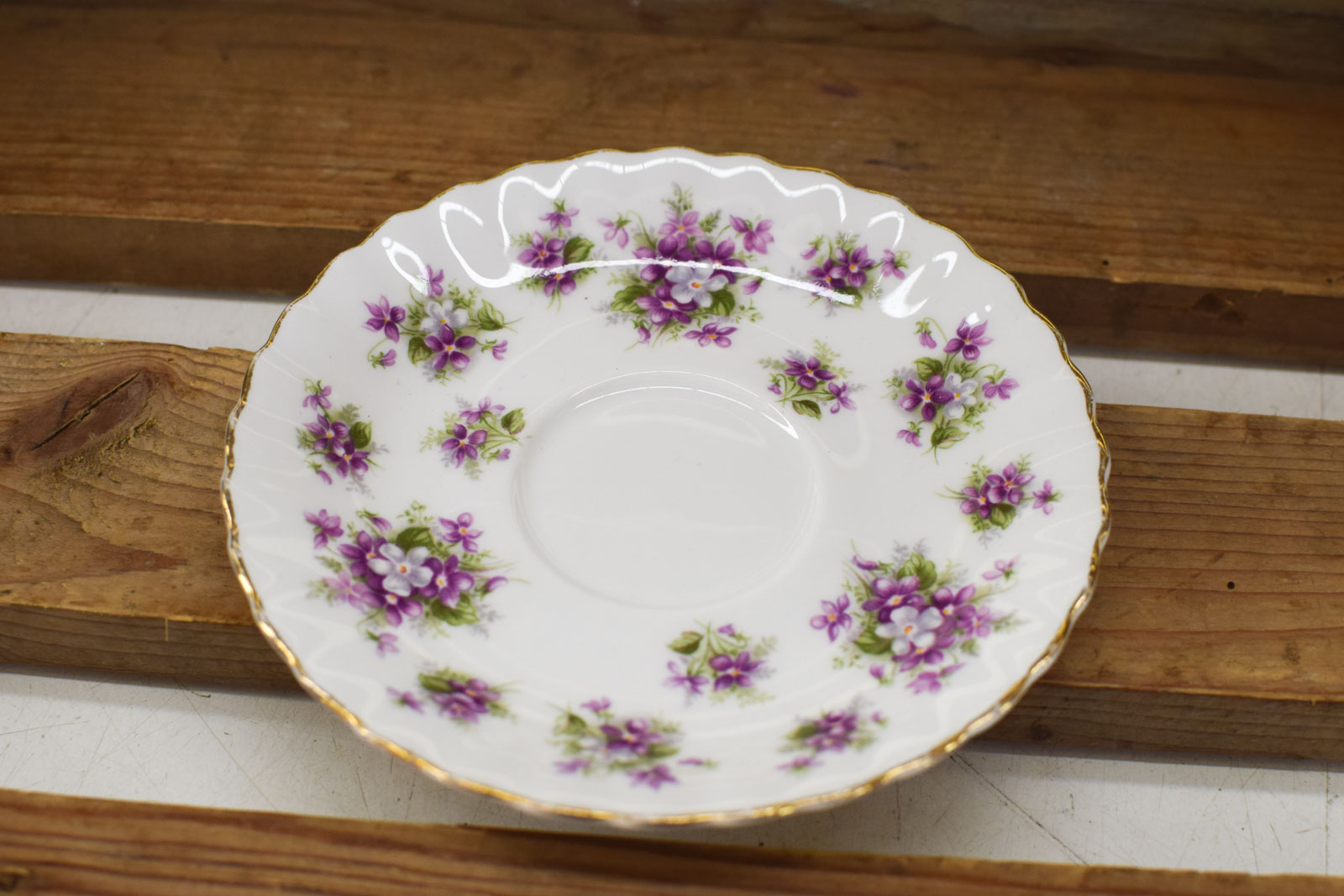 diameter bovenkant opening van het kopje 7 cm hoog 6,5 cm diameter van het schaaltje 12,5 cm heeft slijtage op het geverfde randje