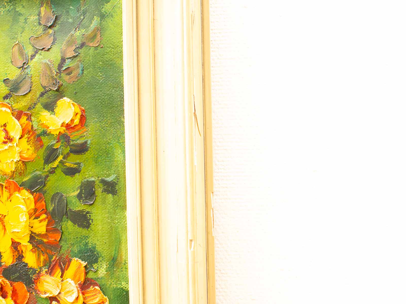 het houten lijstje heeft beschadegingen de schilderij is geschilderd op doek breed 80,5 cm