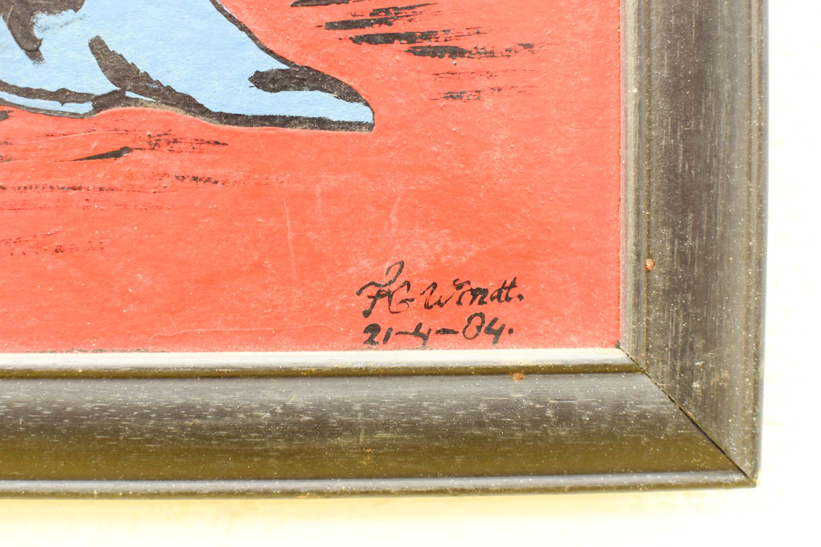 geschilderd op hout breed 46,5 cm hoog 65,5 cm heeft lichte gebruikssporen