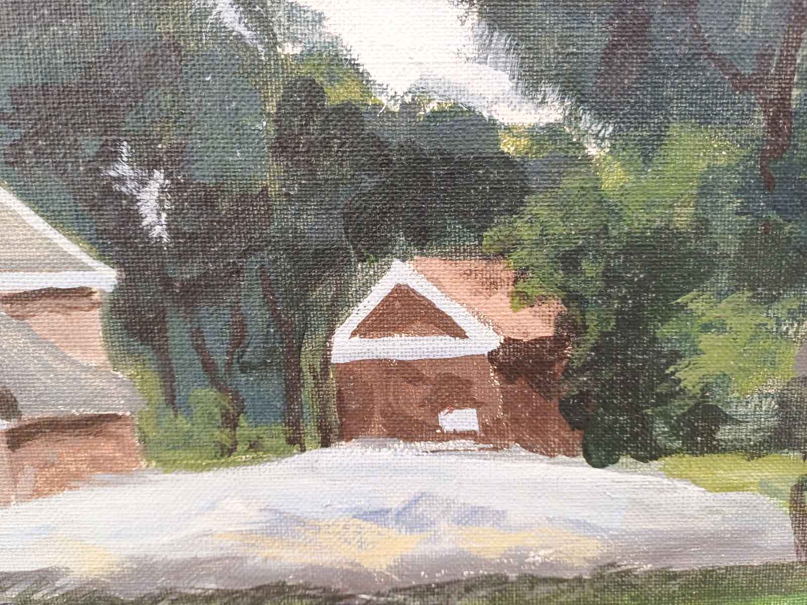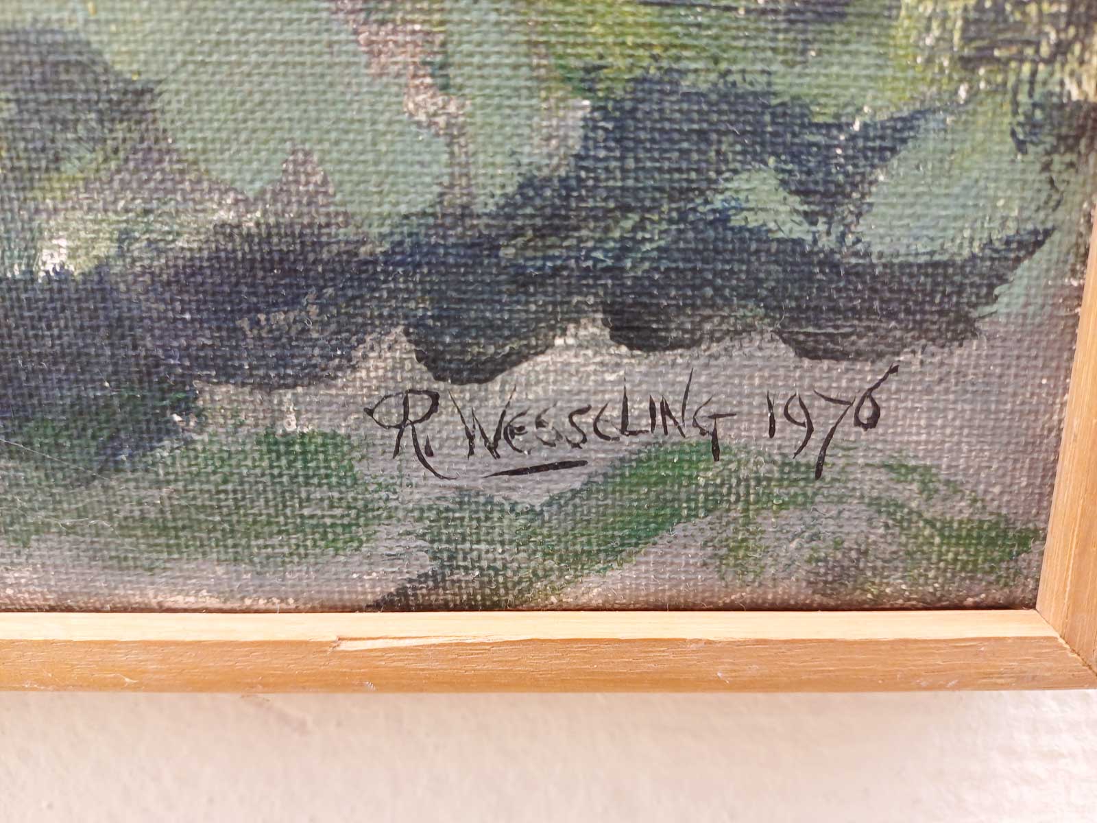 het schilderij is geschilderd op doek ziet er nog goed uit