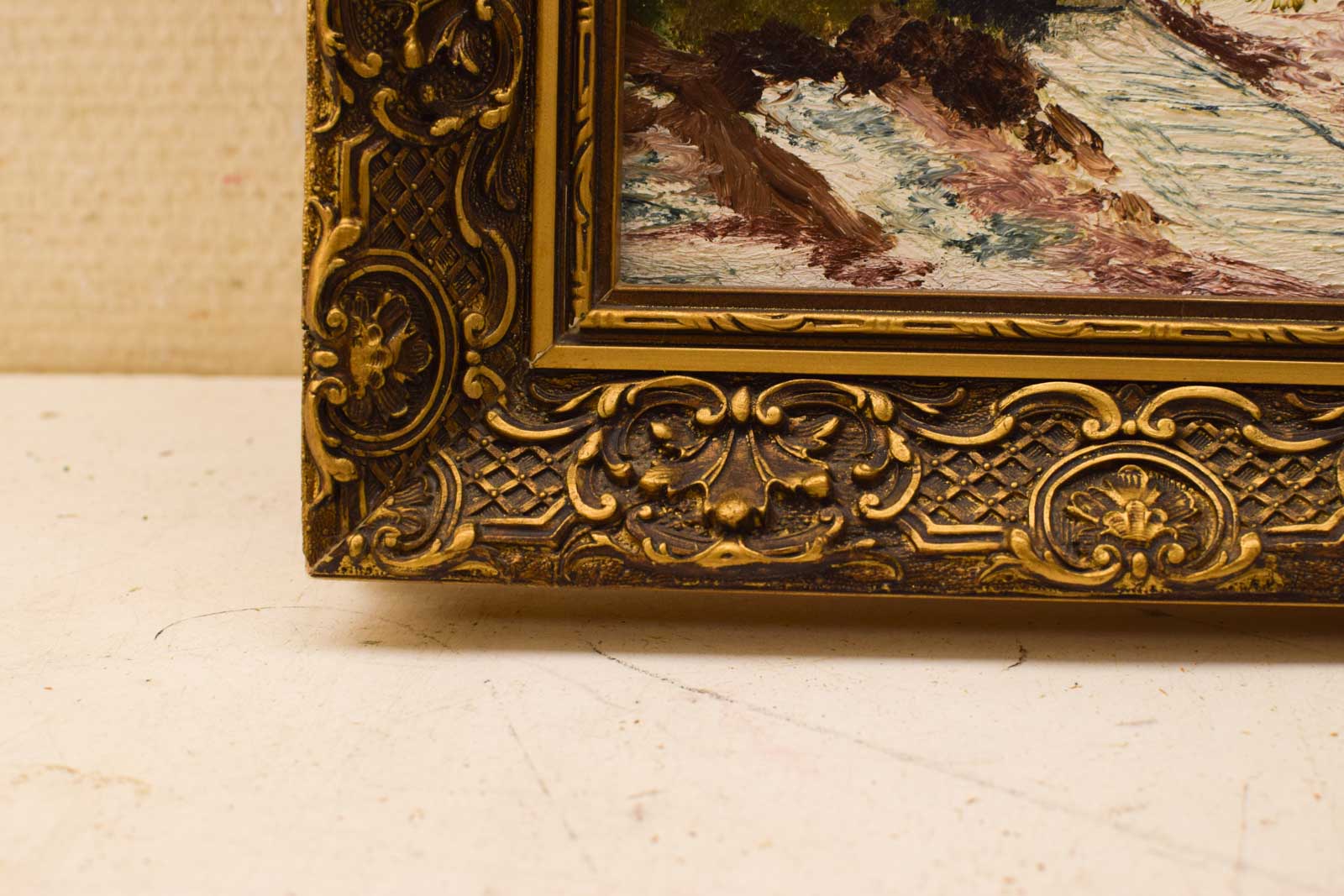 de schilderij is geschilderd op doek