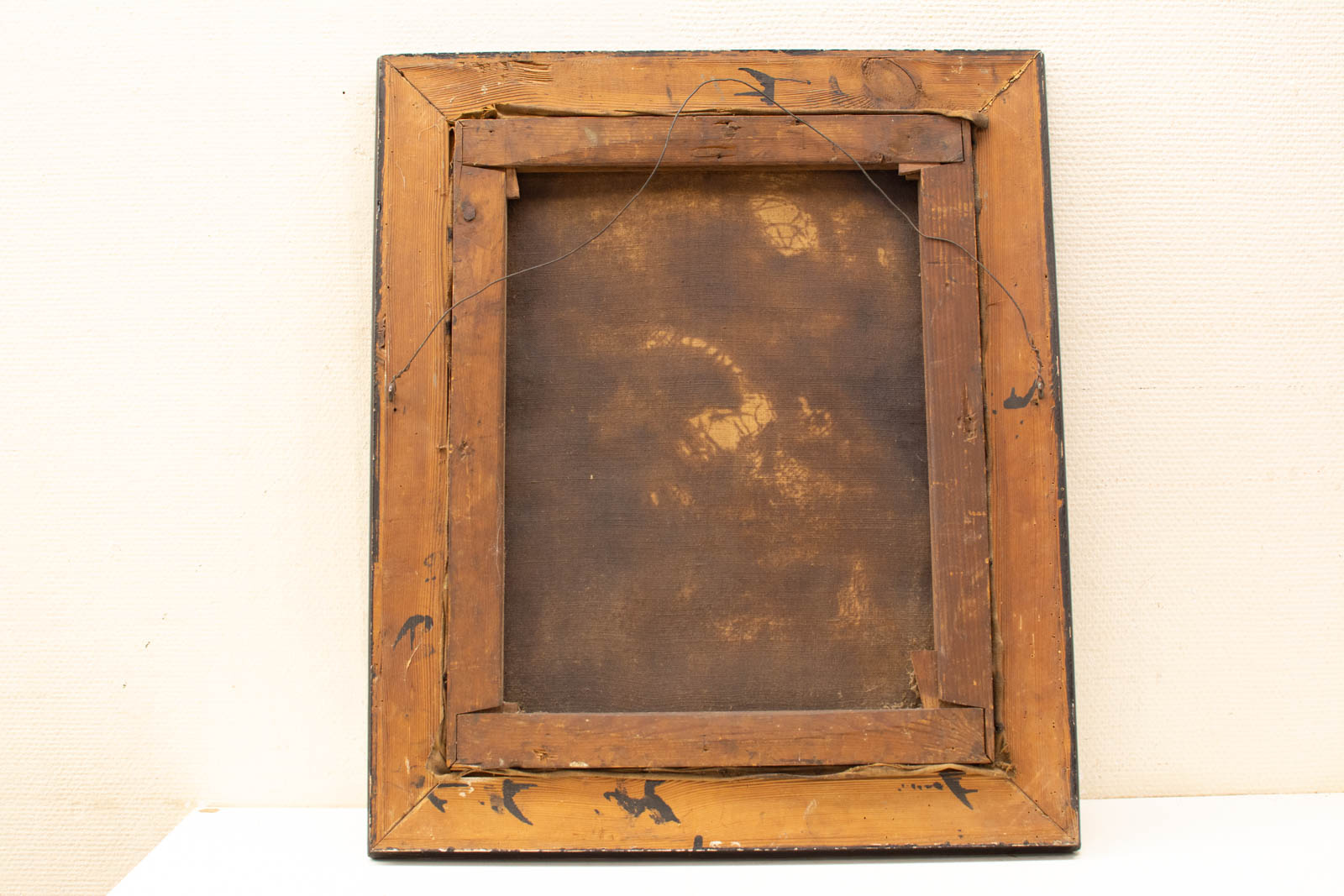 de schilderij is geschilderd op doek de lijst heeft gebruikssporen breed 57,5 cm hoog 67,5 cm