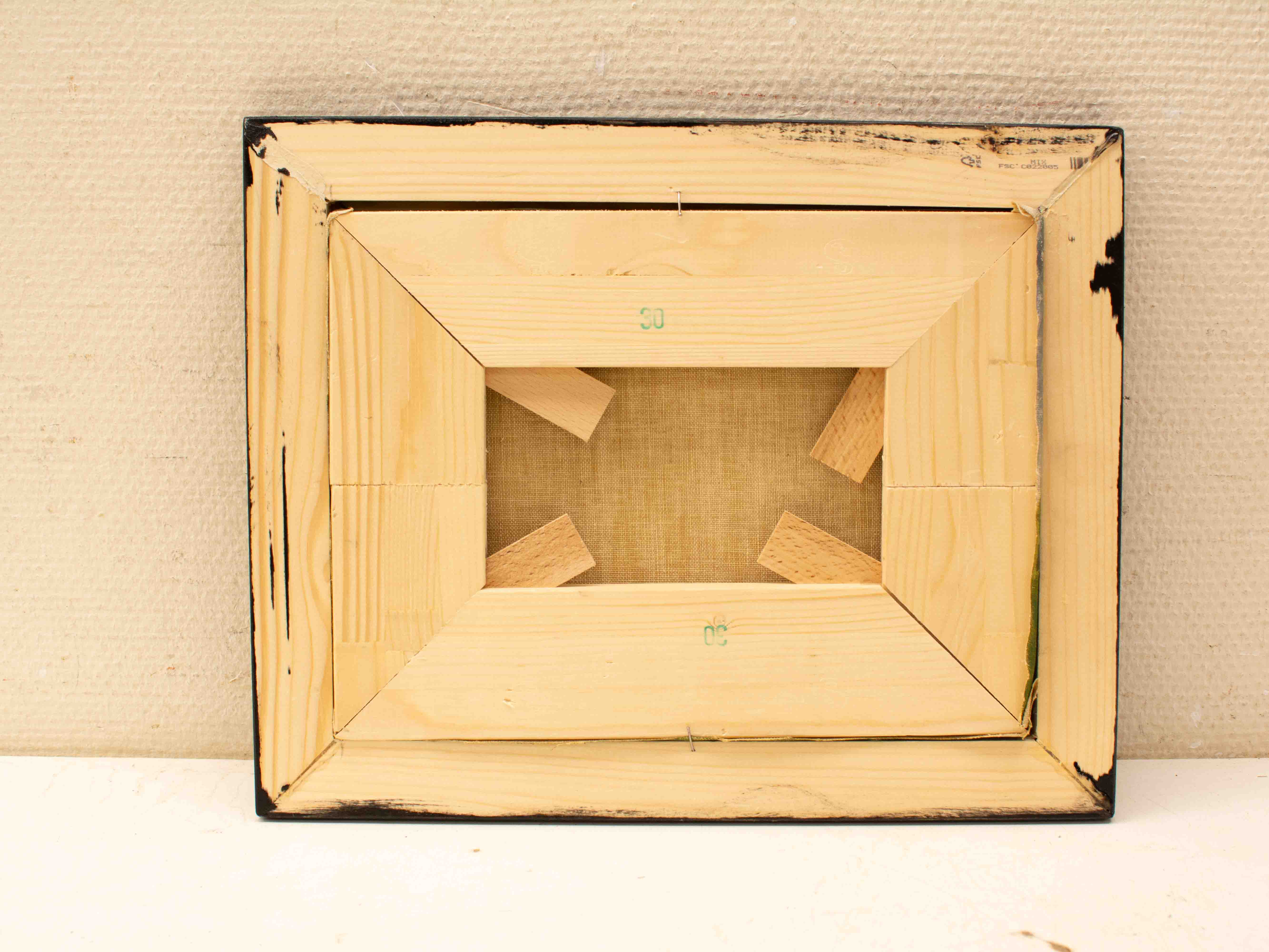 schilderij is geschilderd op doek hoog 29,5 cm breed 37 cm