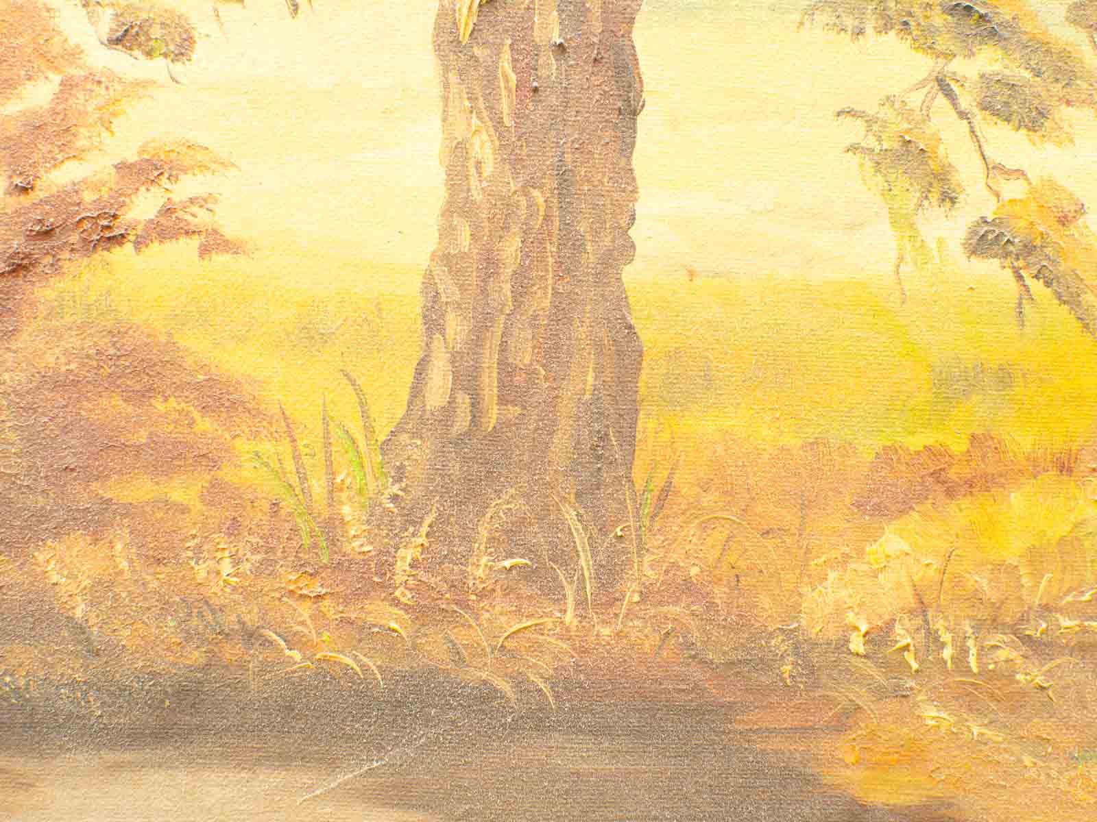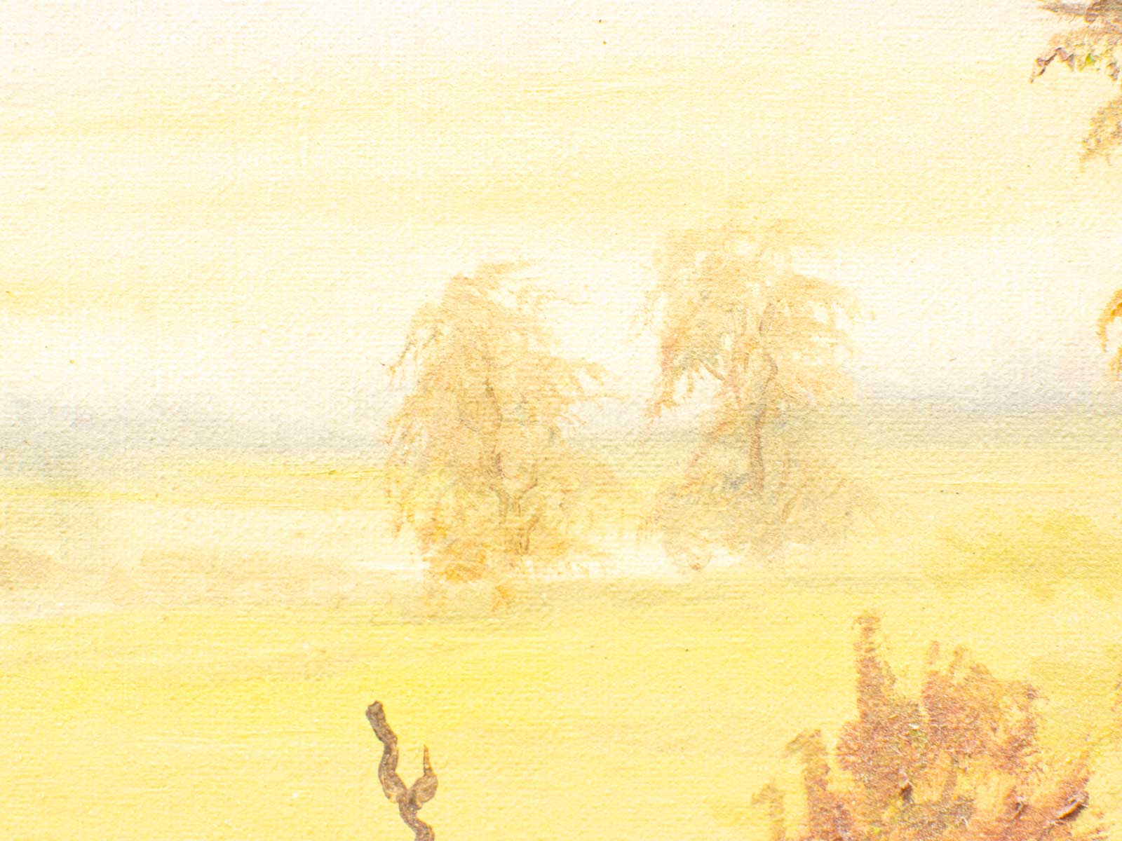 het is geschilderd op doek is niet ingelijst er staat een naam maar is onleesbaar wel een nummer 79