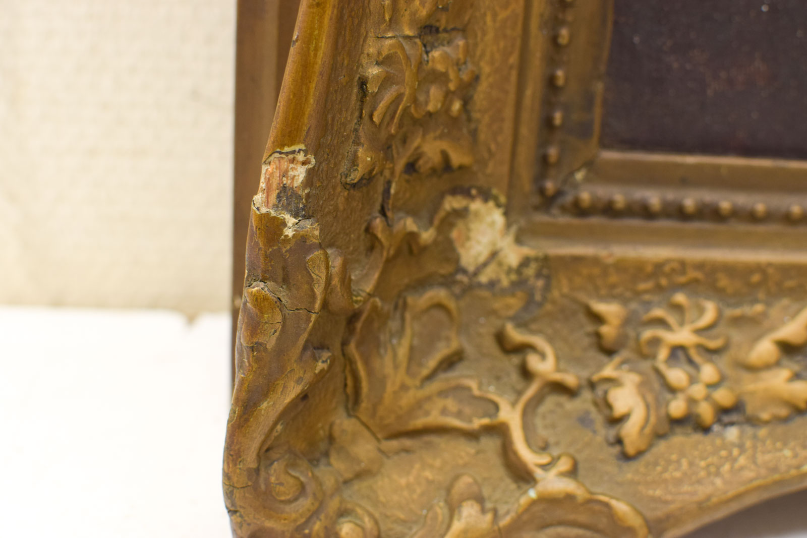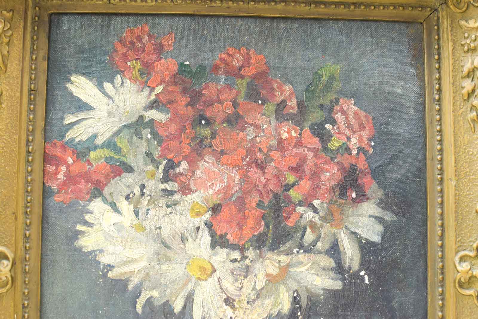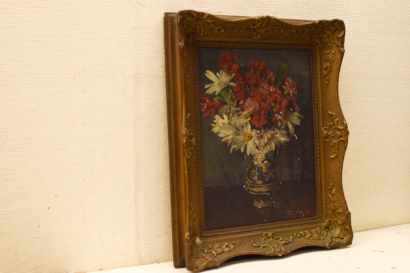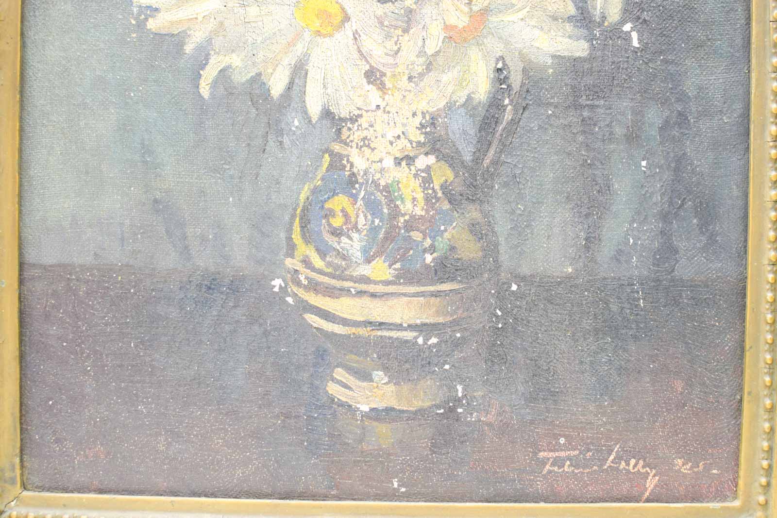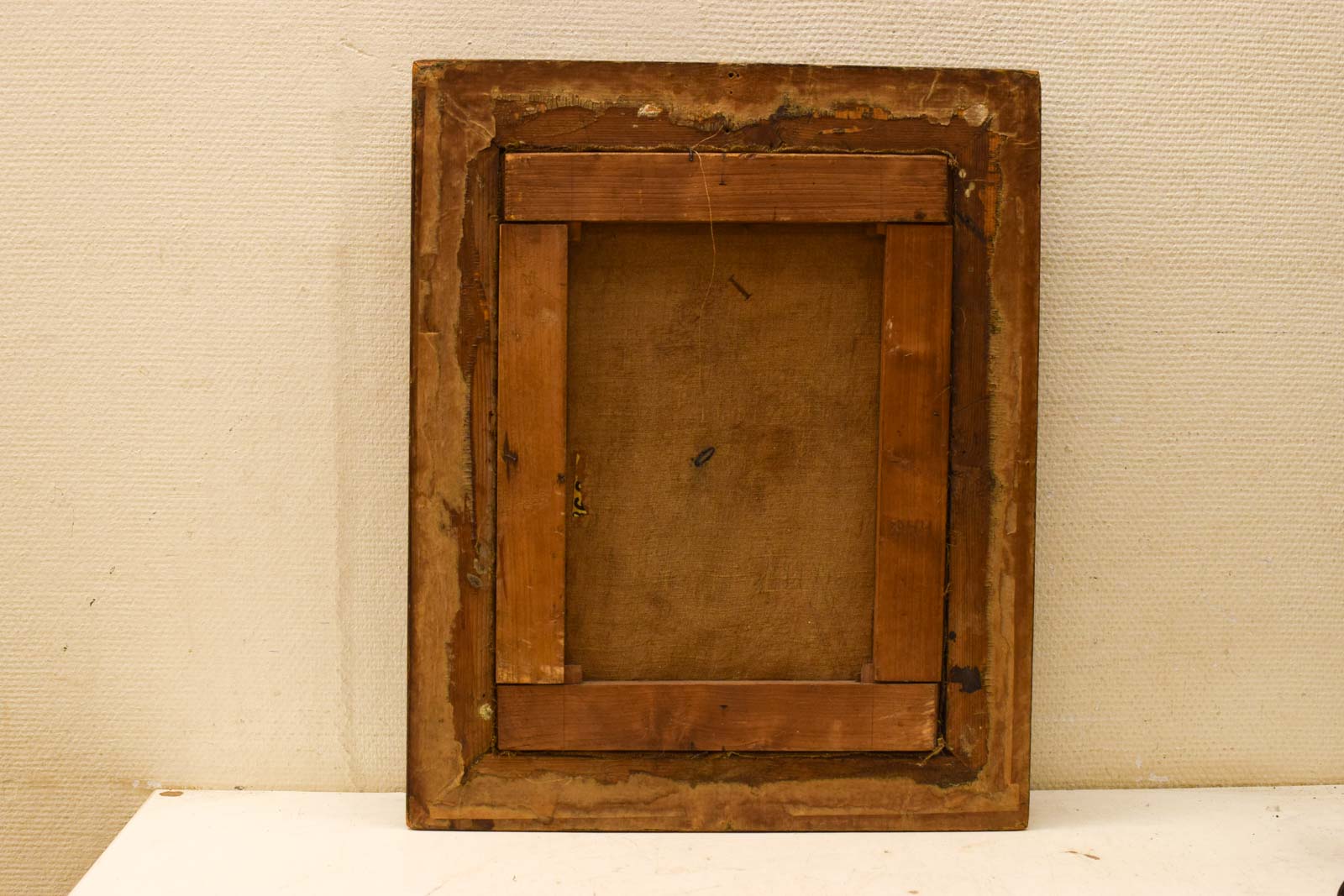 de schilderij is geschilderd op doek de schilderij heeft vlekken de lijst gebruikssporen