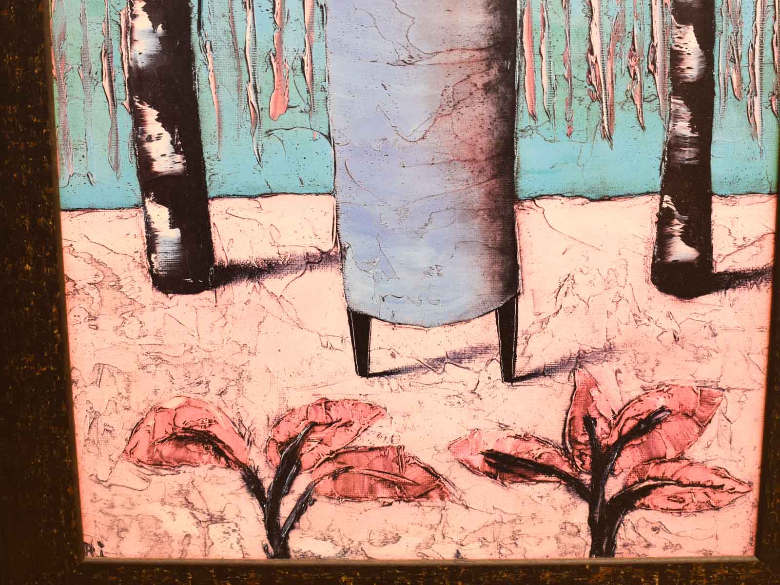 Het schilderij is geschilderd op hout de lijst heeft een paar lichte gebruikssporen is verder nog redelijk
