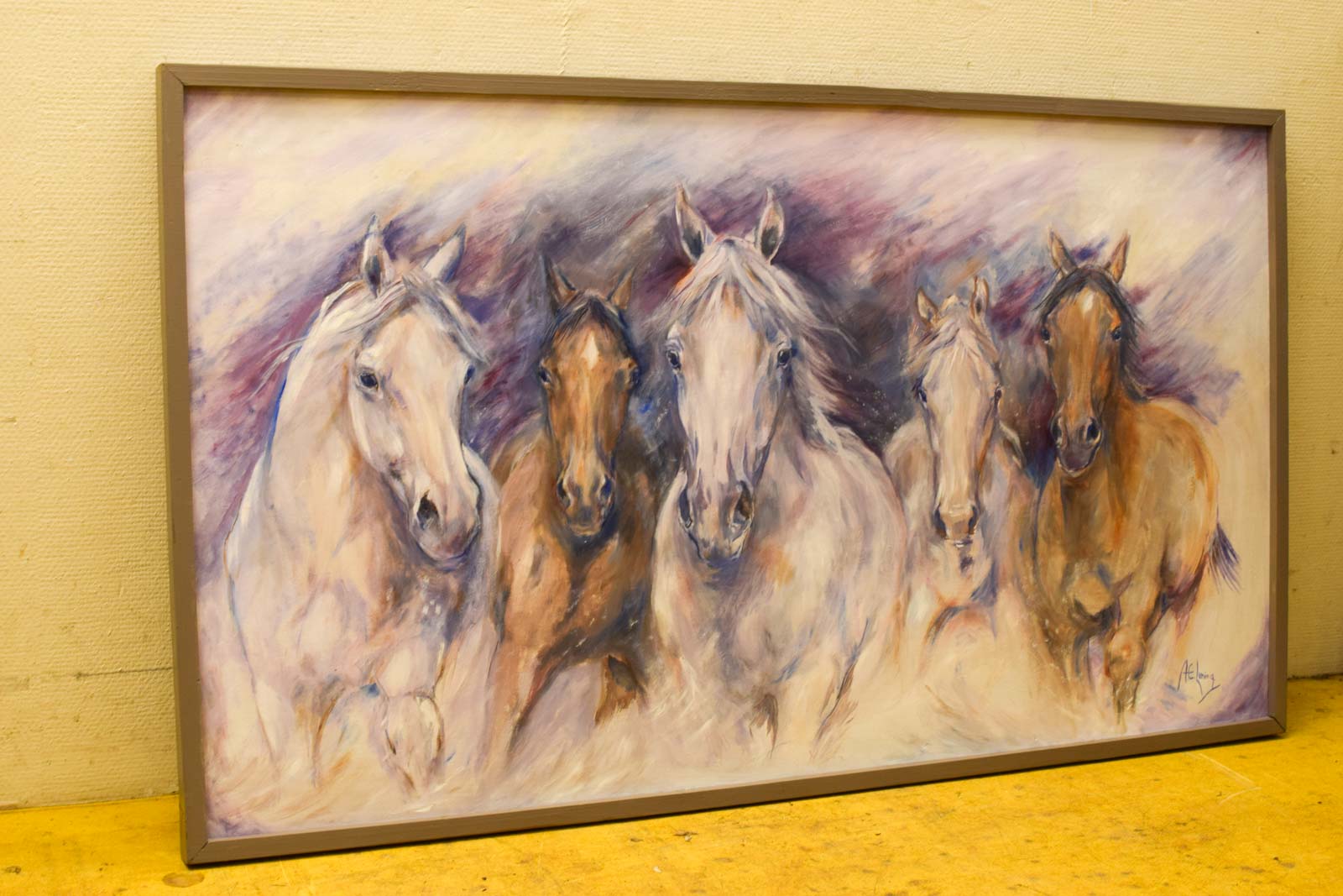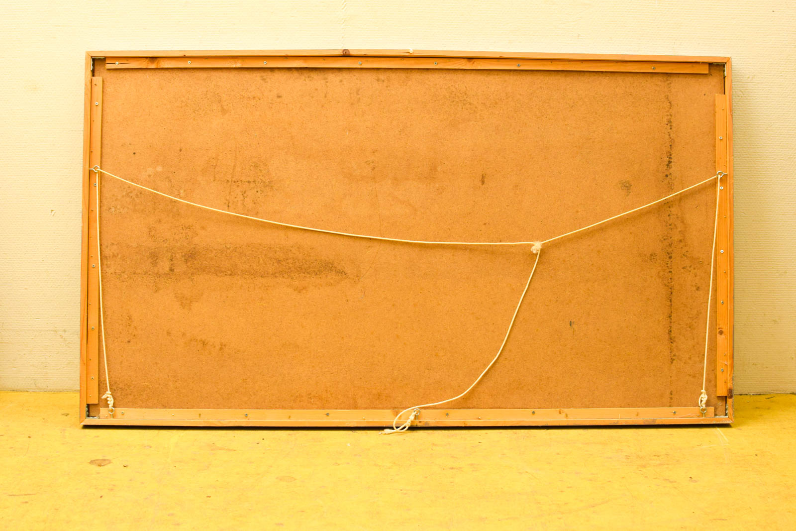 het schilderij is geschilderd op hout breed 127,5 cm hoog 72,5 cm