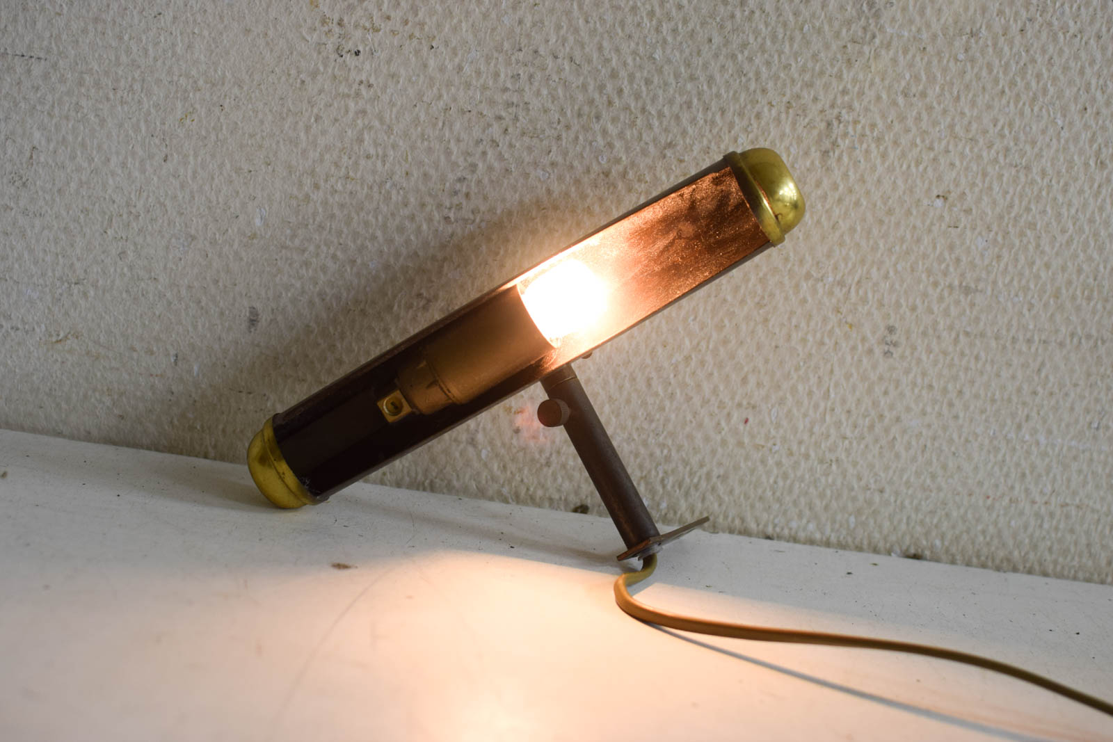 de schilderijlampje heeft vlekjes en gebruiksporen maar is nog heel breed 21,5 cm