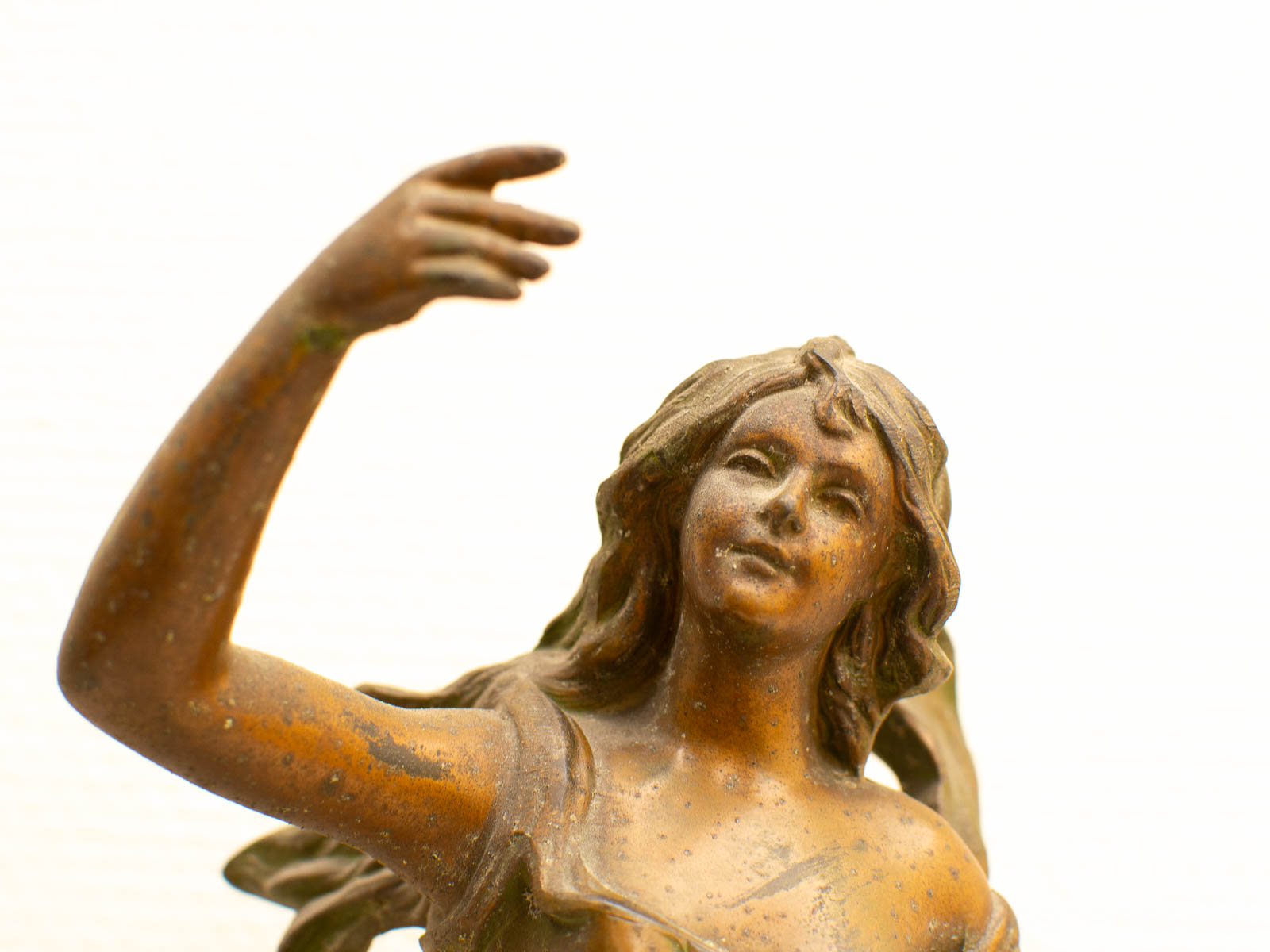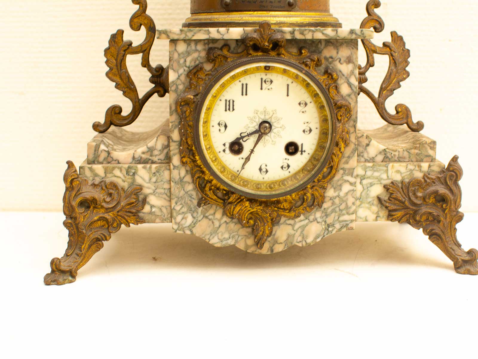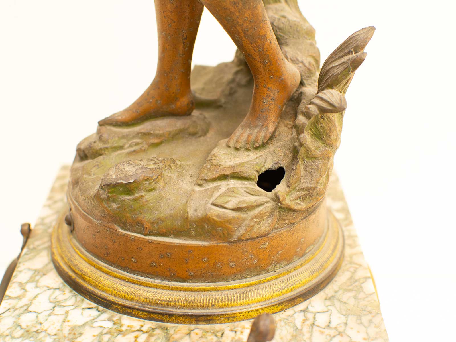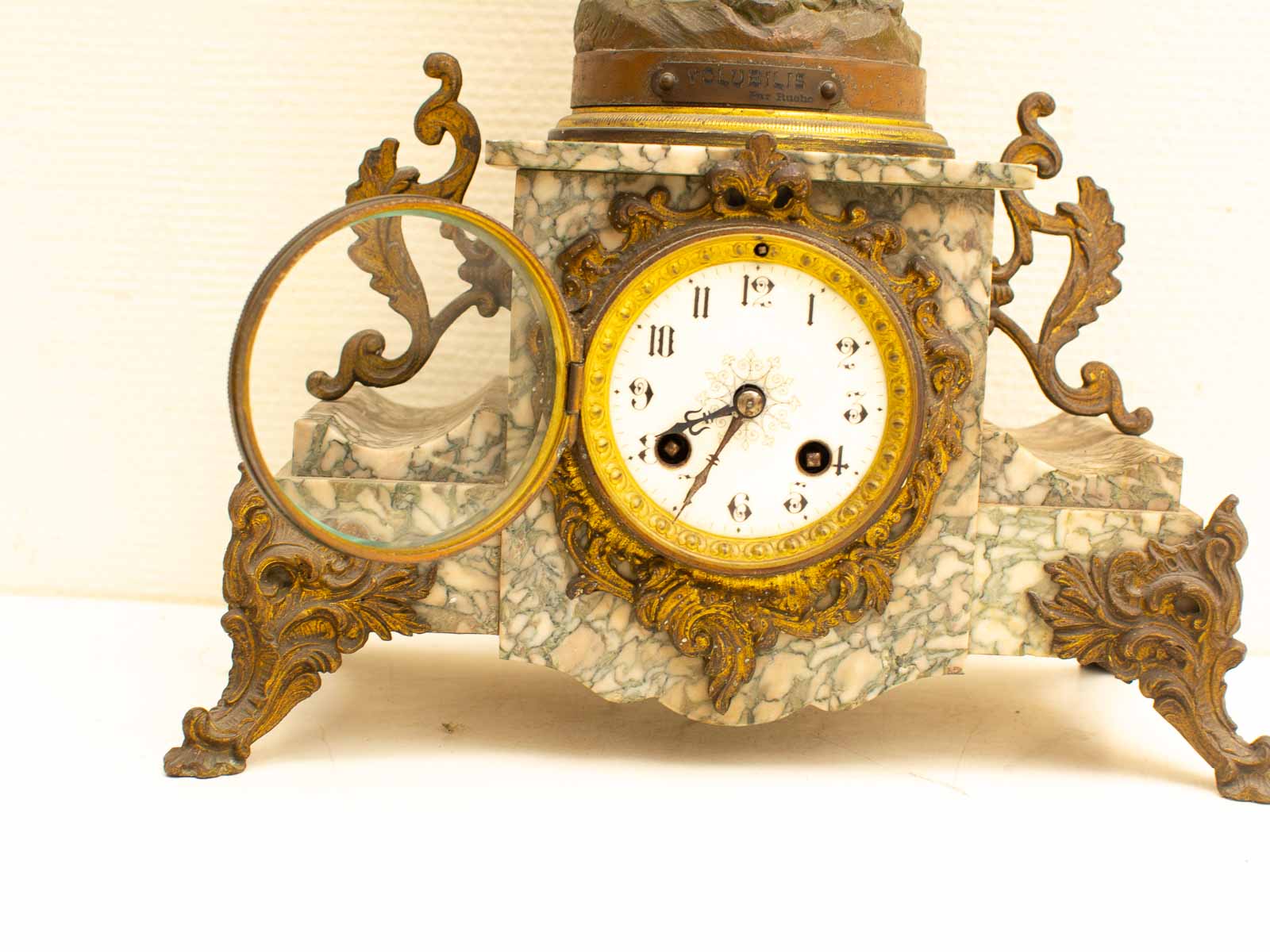 de klok is gemaakt van zink en marmer loop of sloop zit geen sleutel bij zit een gaatje bij het beeld zie foto 1 voetje is los