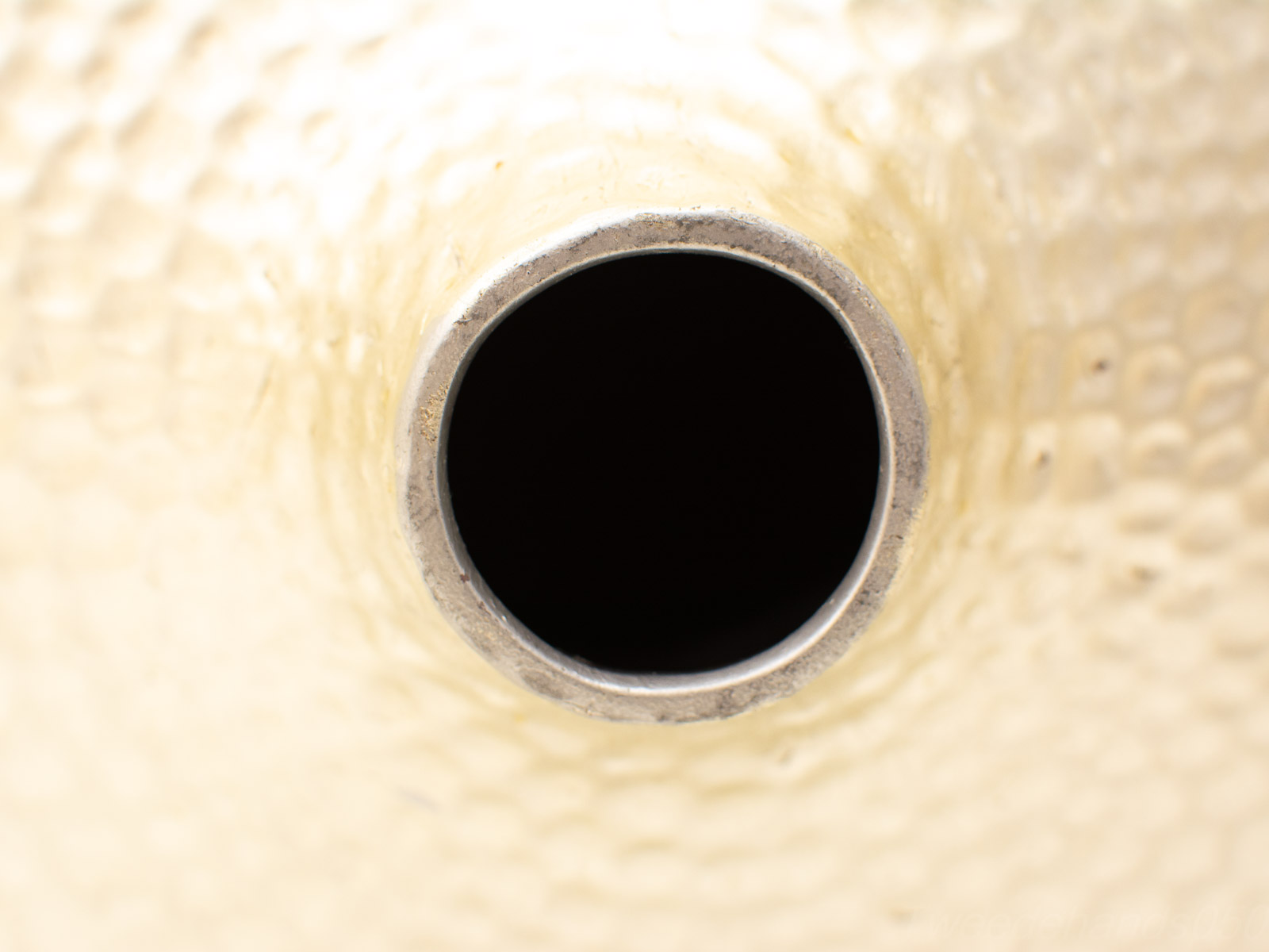 de vaas is bol aan de onderkant en heeft een smalle hals diameter vaan de bovenkant opening 5,5 cm
