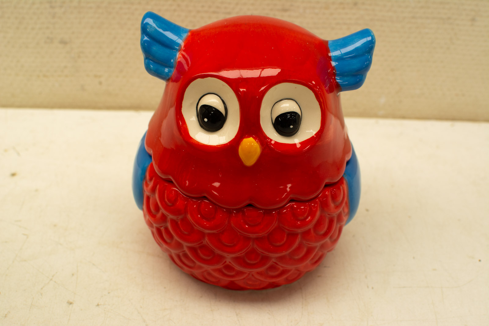 op de rand mist een klein stukje de uil is van porselein en ziet er verder nog goed uit diameter bovenkant van de schaal 14,5 cm