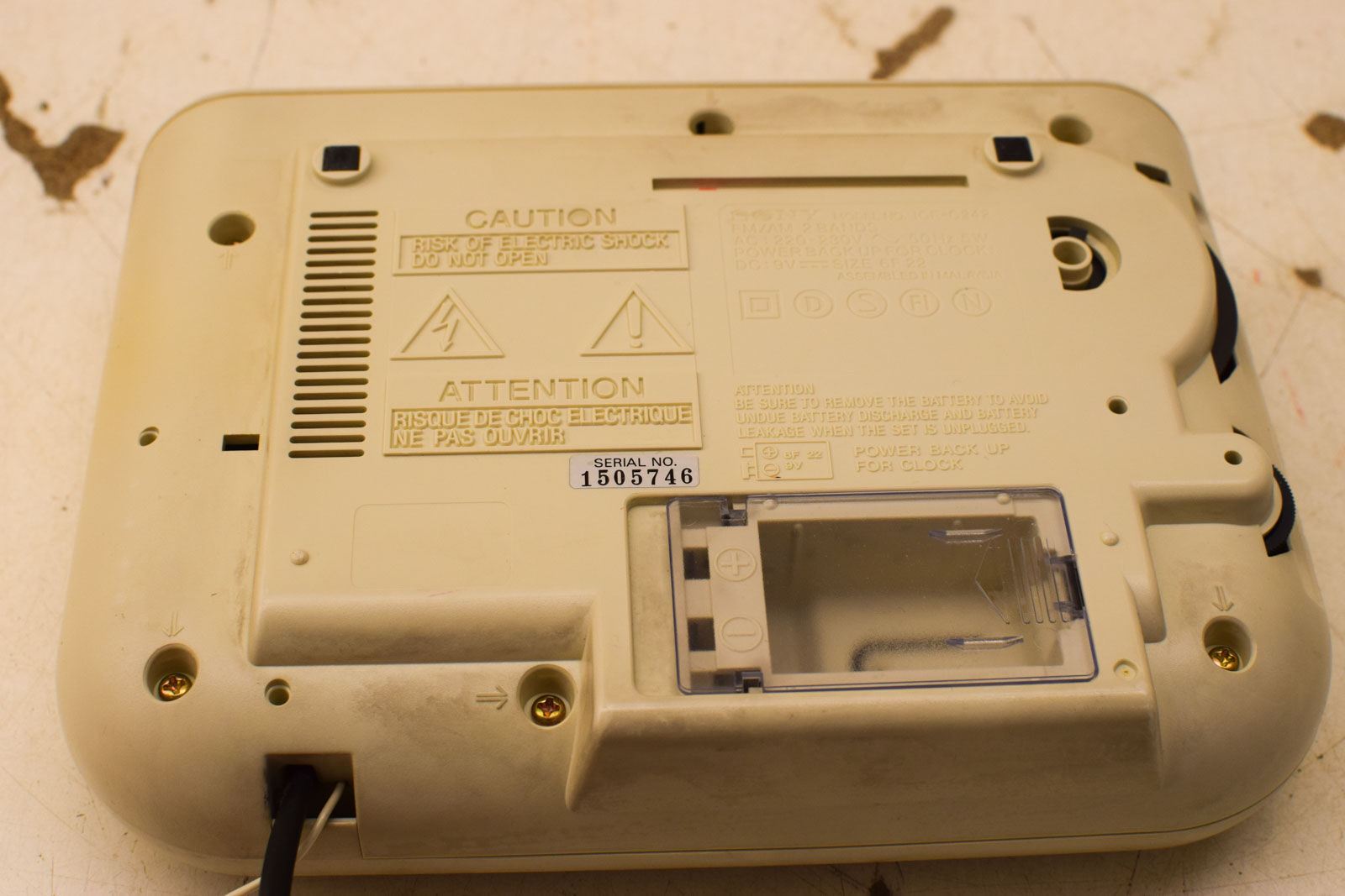 Getest en doet het de wekker is verkleurd breed 20,5 cm diepte 14 cm hoog 5 cm