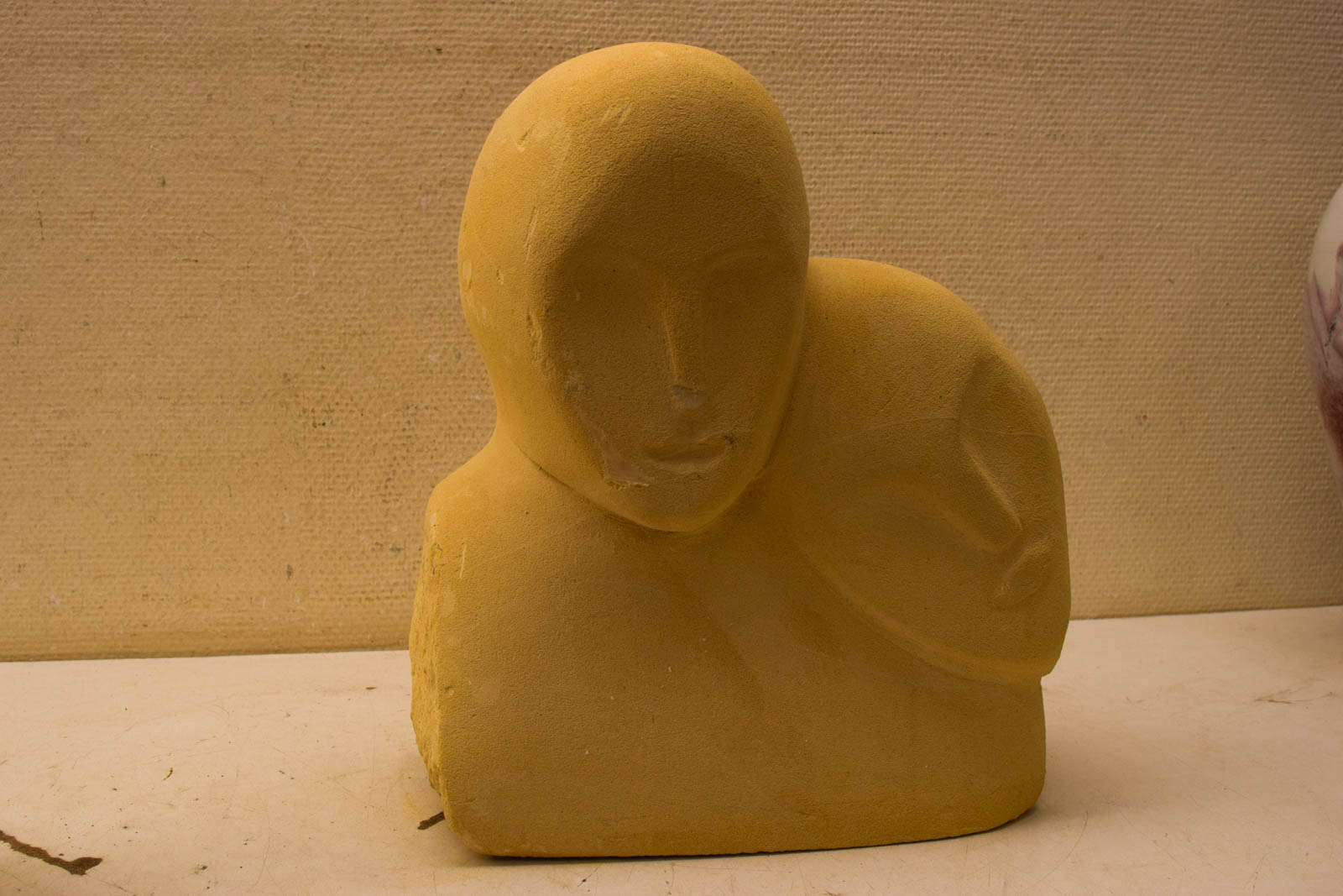 1 zijkant heeft beschadigingen en op de hoofd een snee de beeld laat af een soort poeder beeld is zwaar