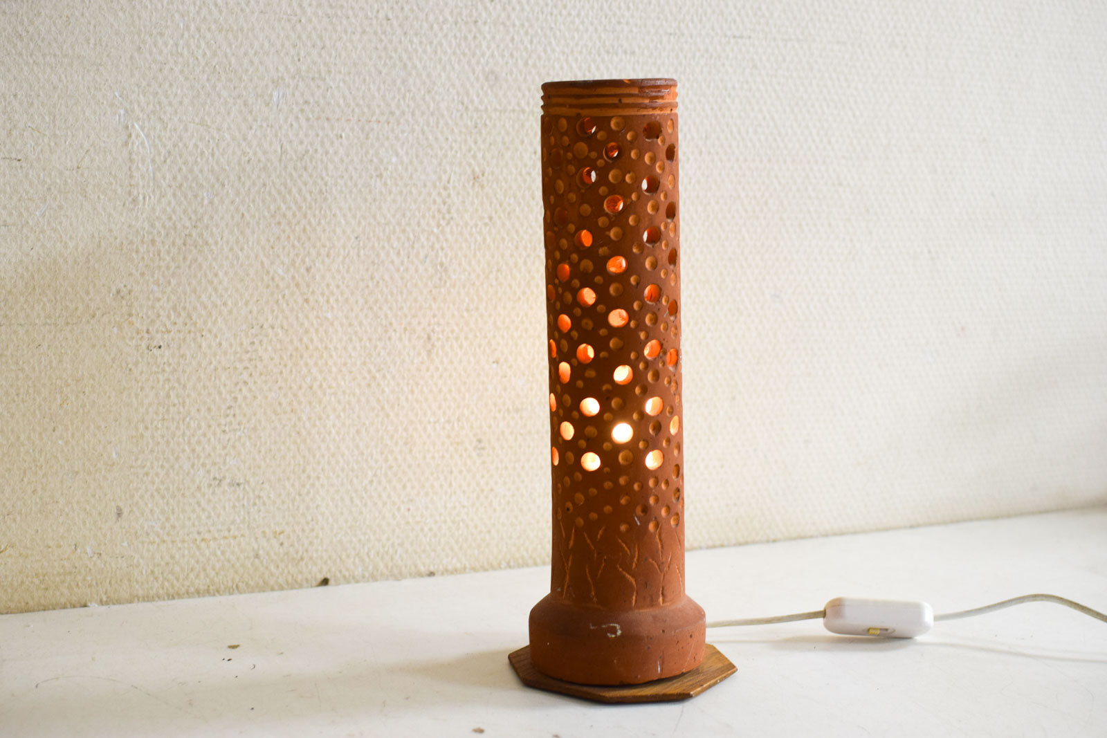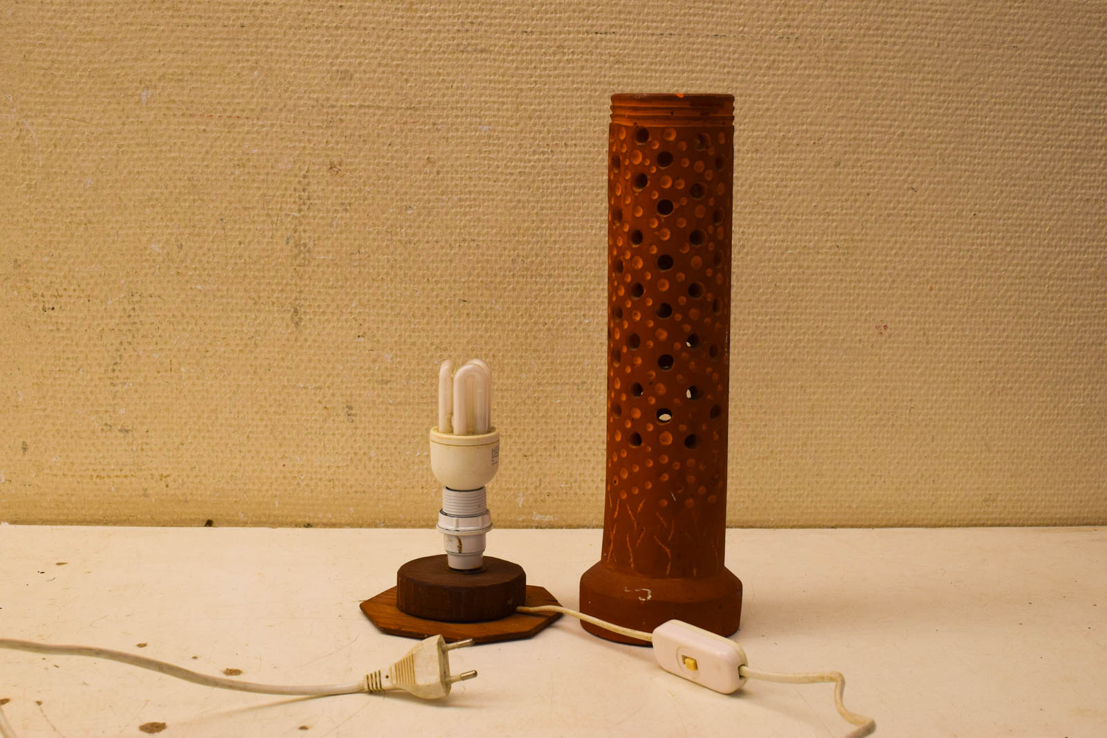 de lamp mist stukjes aan de bovenrand heeft vlekjes maar is verder nog heel staat er wel los op diameter bovenkant opening met rand gemeten 7,5 cm