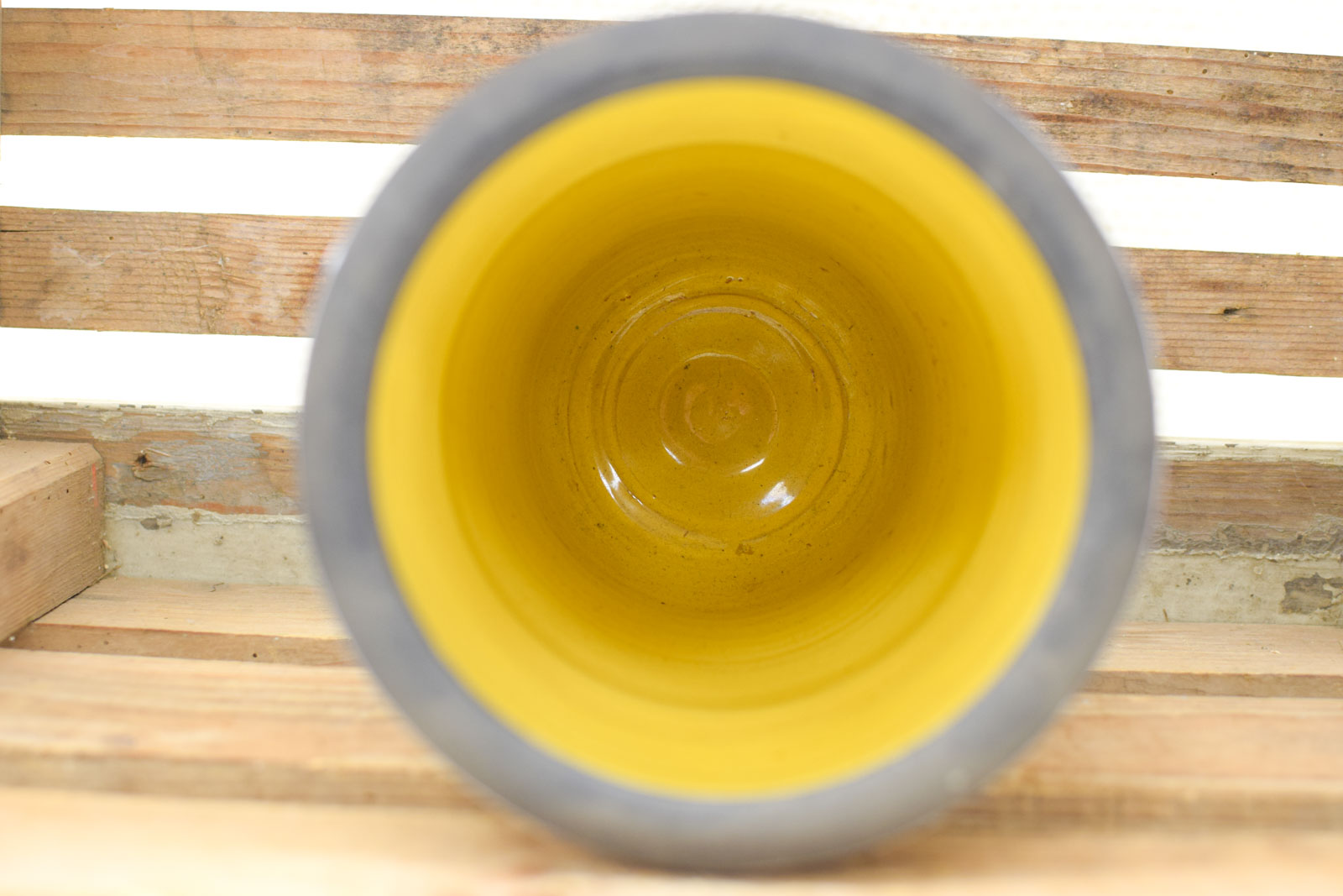 de vaas heeft een prent van een ree de vaas is in de binnenkant geel van kleur diameter openening 14 cm hoog 21 cm