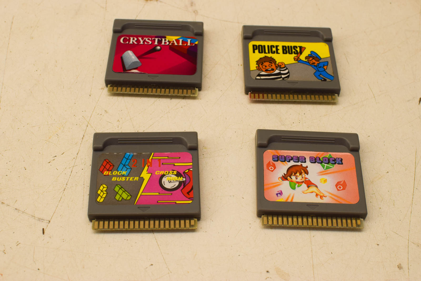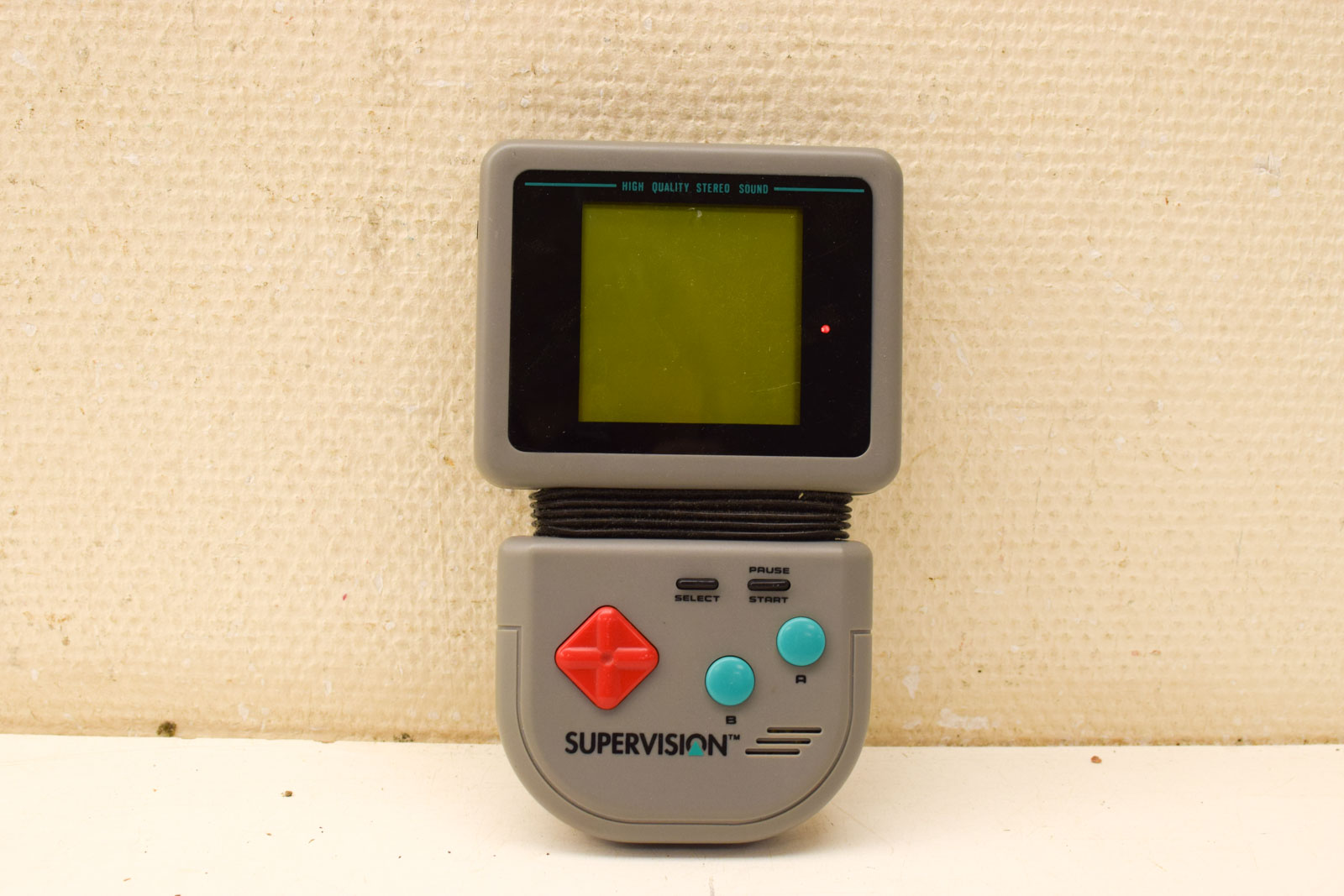 het geluid doet het alleen er komt geen beeld er zijn 4 spelletjes bij breed 11,5 cm hoog 19,5 cm