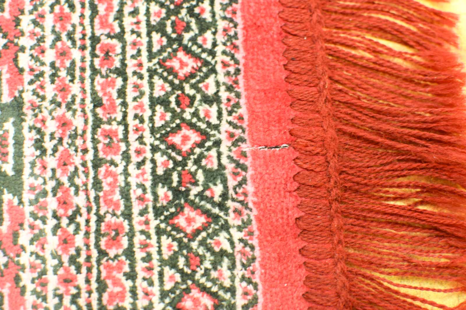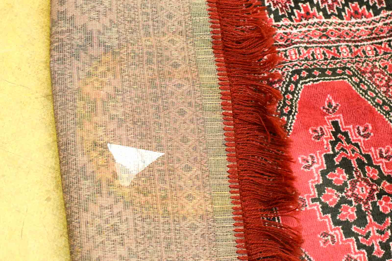 de tafelkleed is dun heeft een vlek en een beschadigingetje