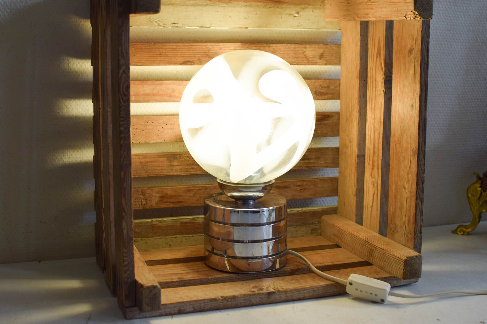 de bol is van glas de lamp heeft gebruikssporen zoals krassen en vlekken