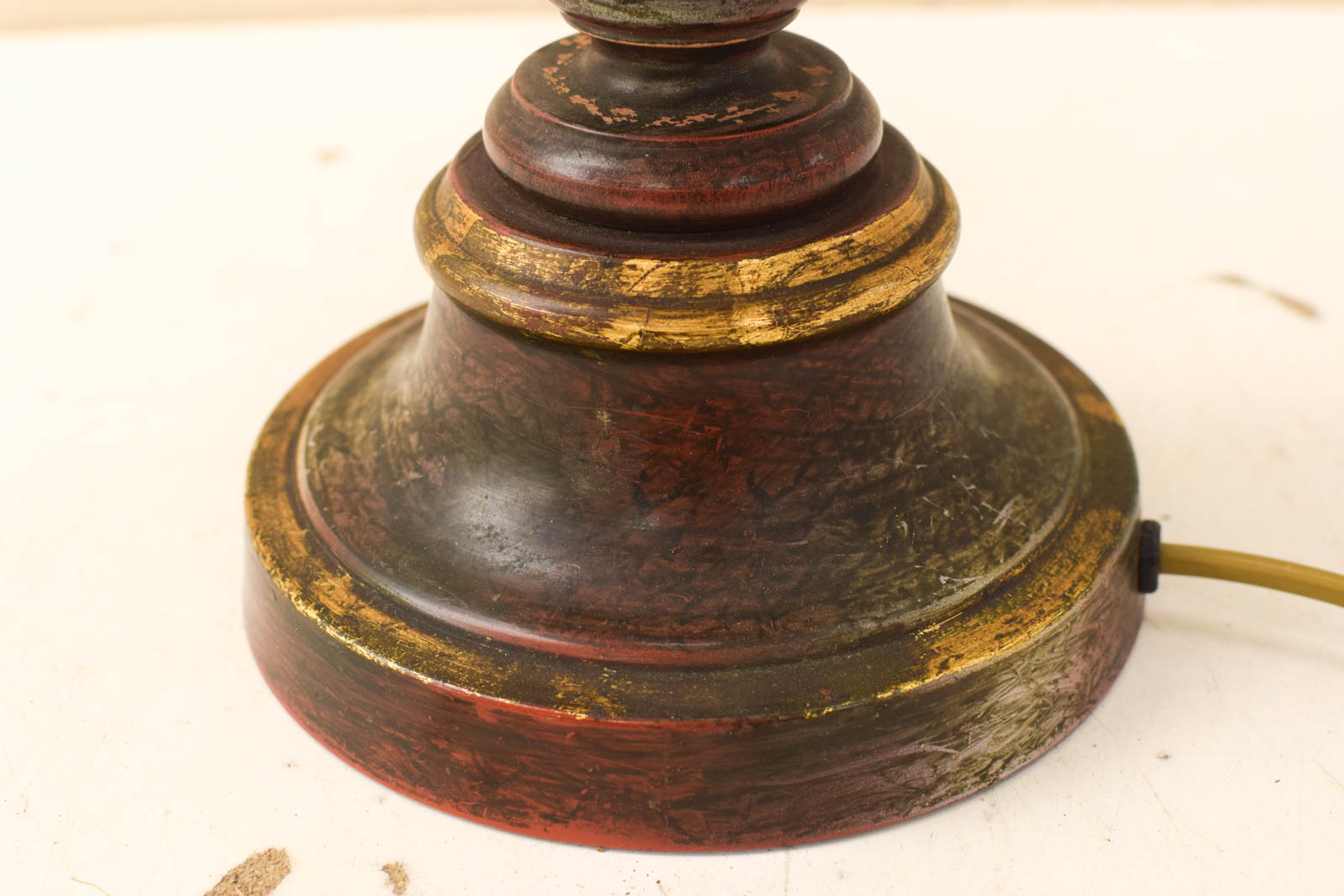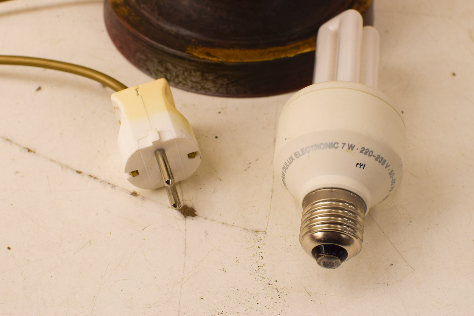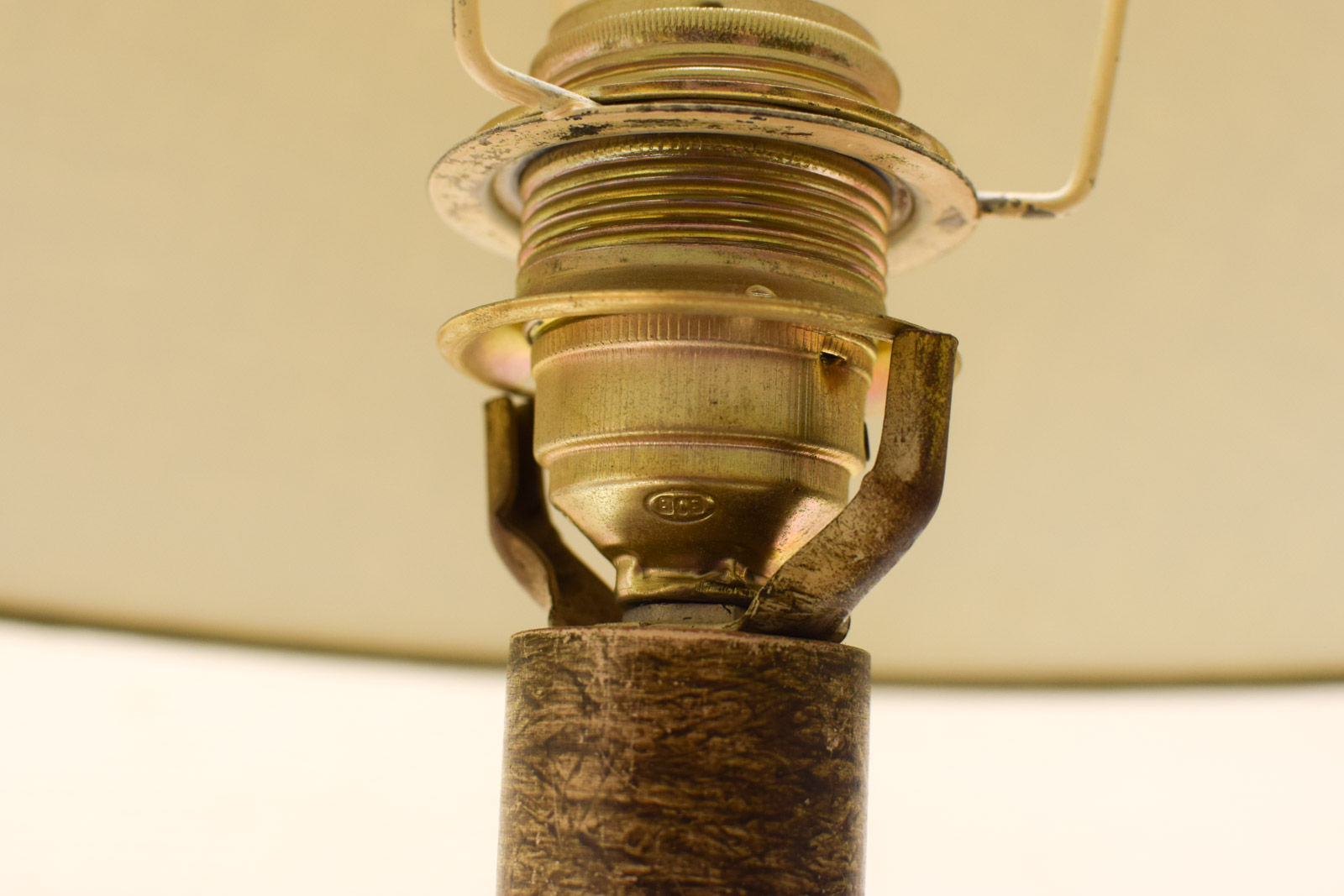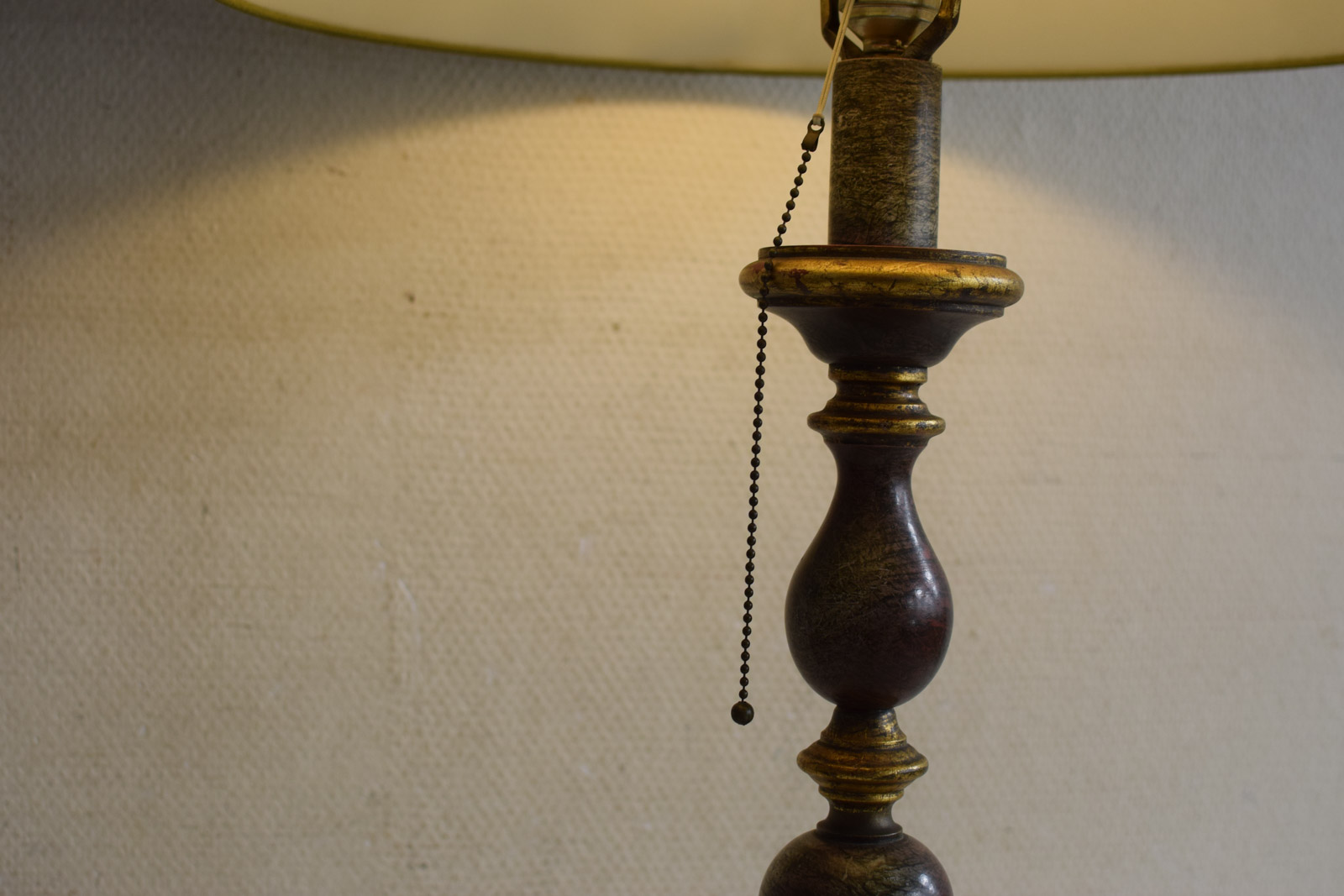 de kap is verkleurd de lamp kan aan om aan het touwtje te trekken de kap is verkleurd de kleur wijkt af van de foto hoog 77,5 cm