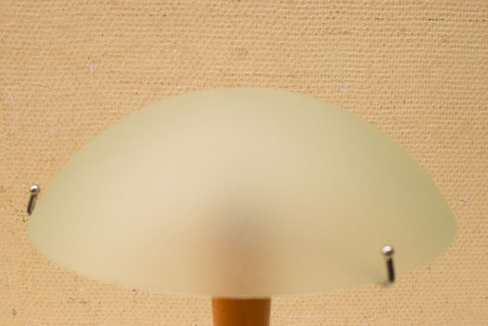 het glas is nog heel de lamp ziet er nog redelijk uit ongeveer 33 cm hoog