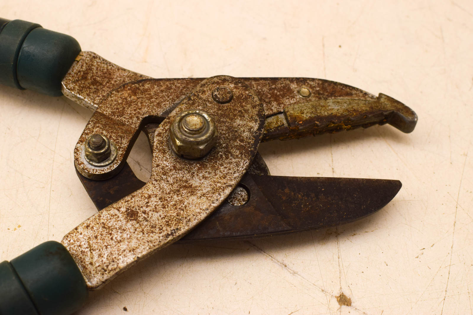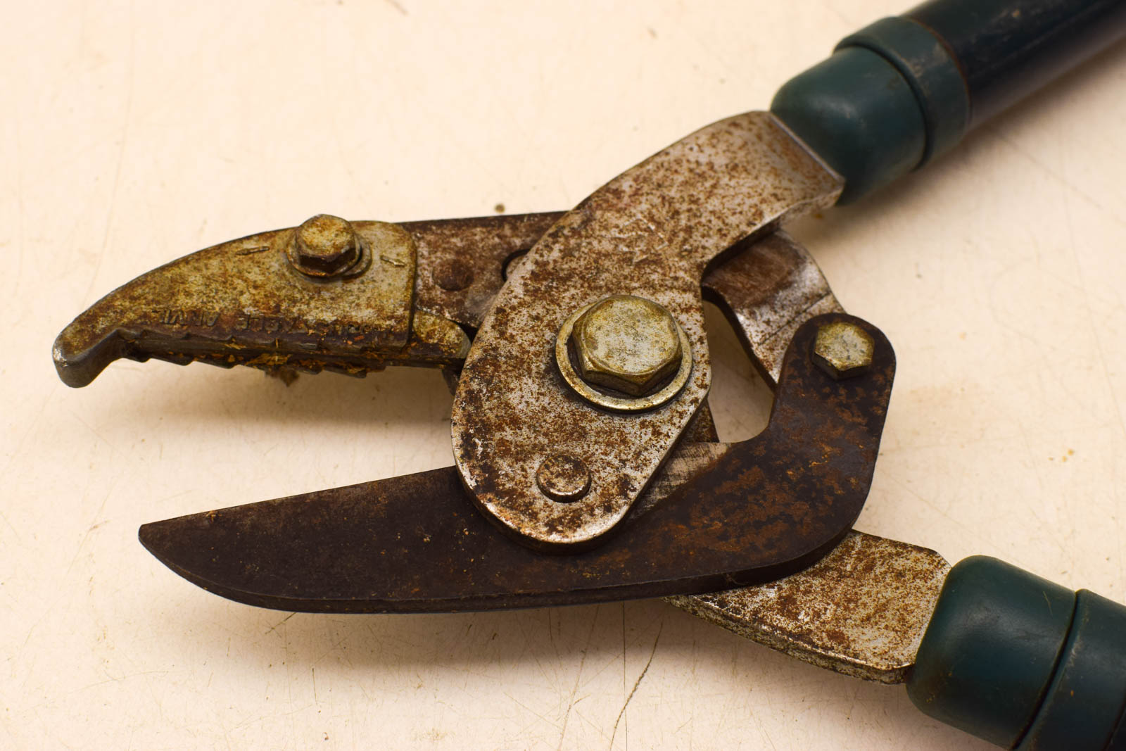 de takkenschaar is gebruikt heeft gebruikssporen en roest