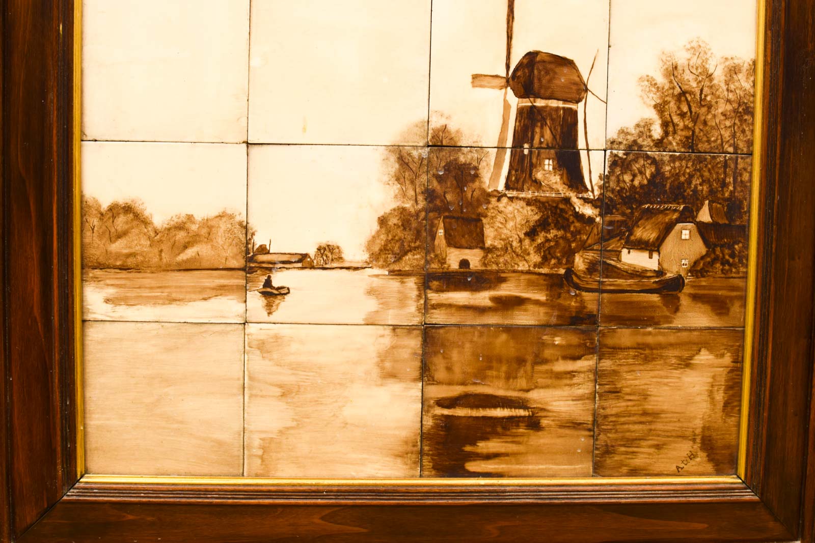 er zitten tegels los de tegelplateau heeft een prent van een molen de lijst heeft gebruikssporen diepte 7,5 cm hoog 101 cm