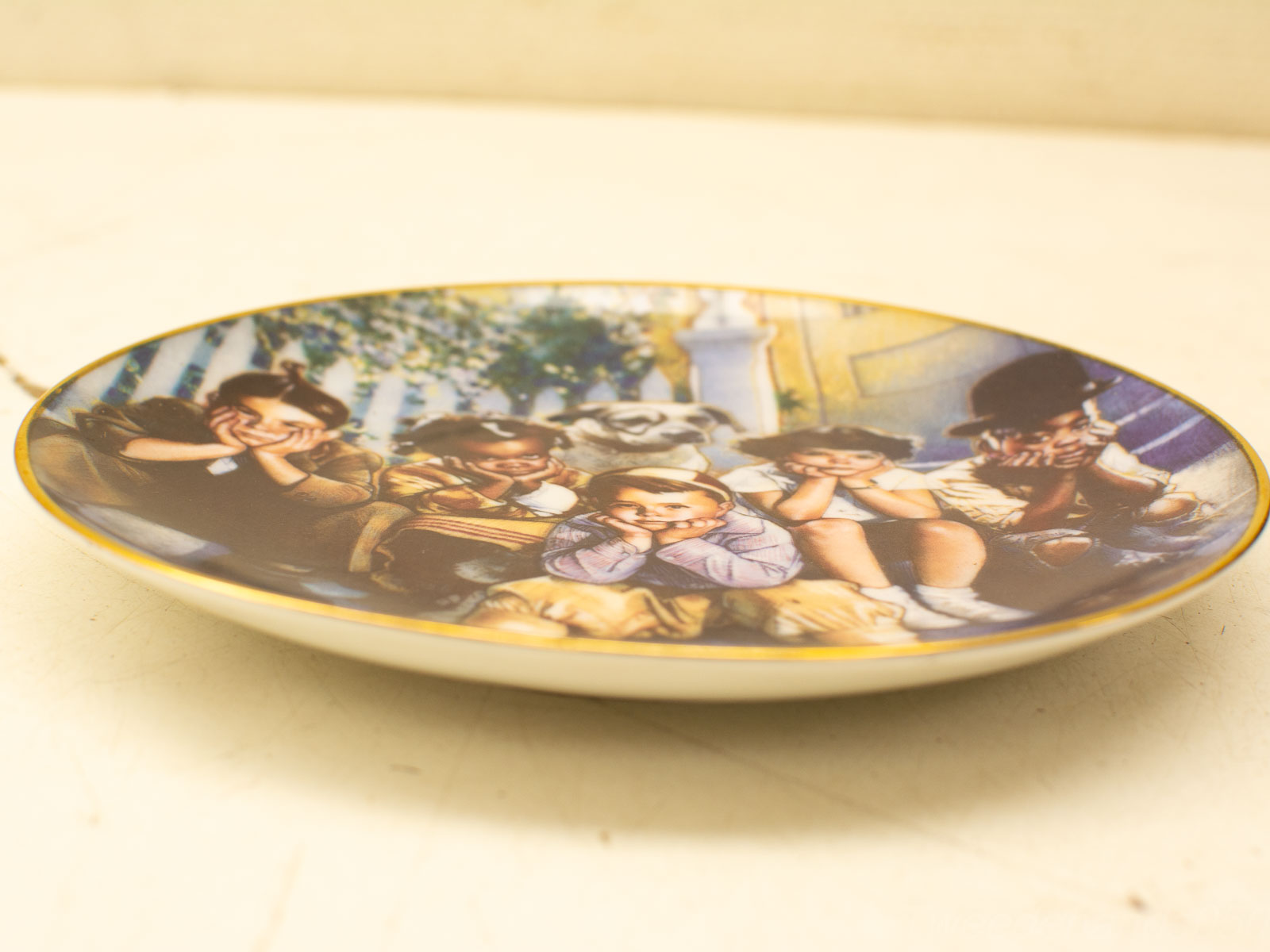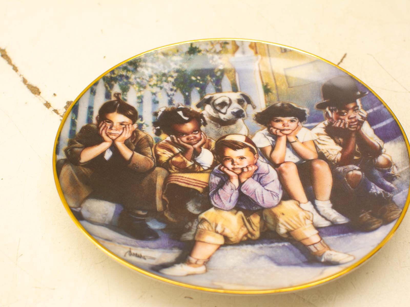 5 kinderenen 1 hond het wandbord ziet er nog goed uit diameter van het bord 21 cm