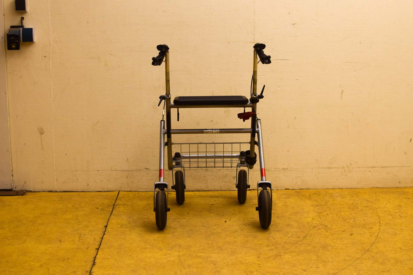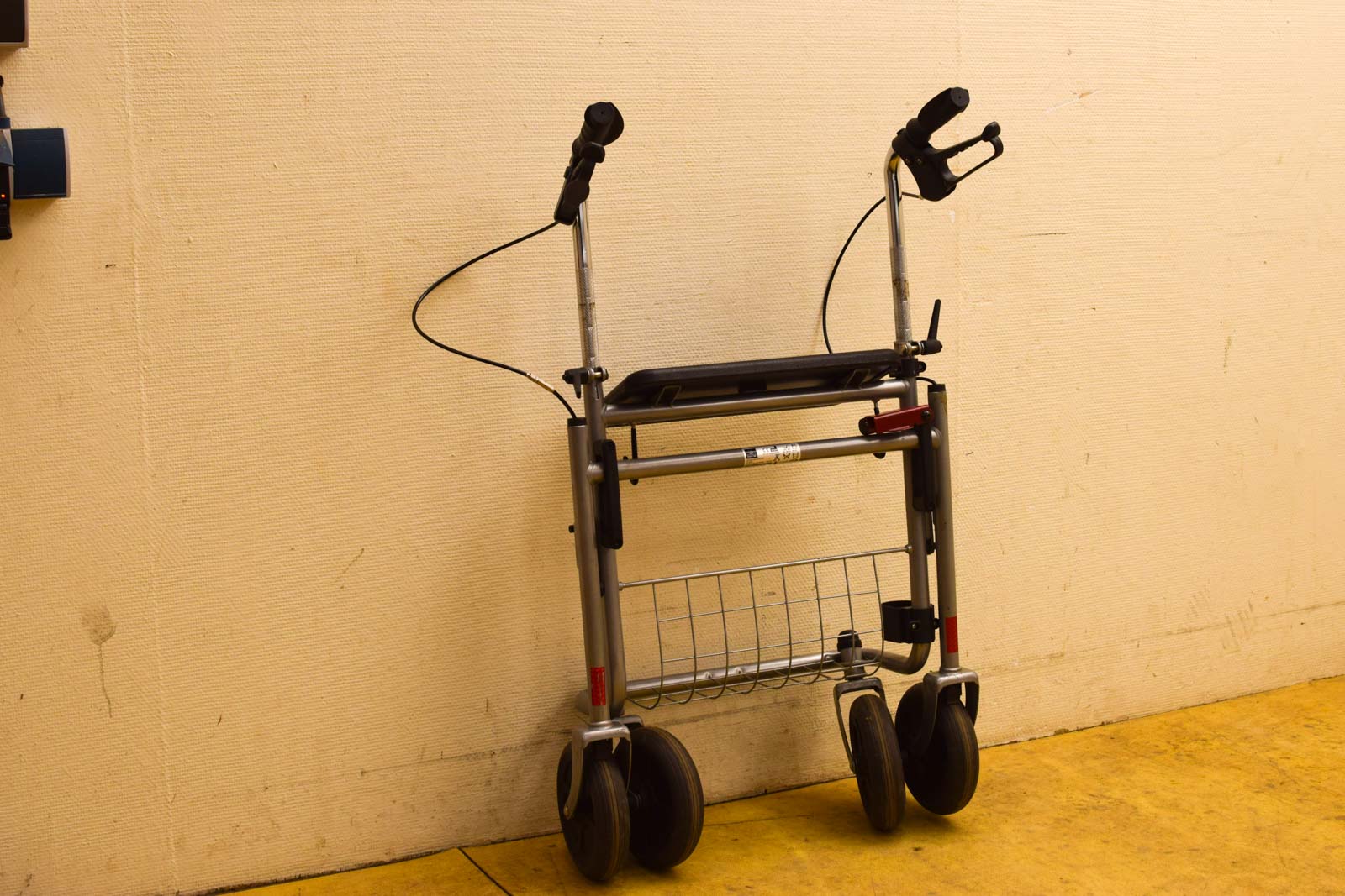 De rollator is inklapbaar is gebruikt en heeft gebruiksporen de handvaten zijn in hoogte te verstellen is geen mandje bij de remmen moeten even nagekeken worden