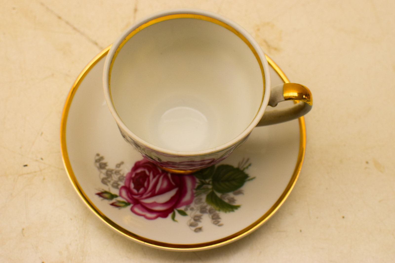 het kopje gemeten diameter bovenkant opening 7,5 cm hoog 7 cm diameter van het schoteltje 13.5 cm
