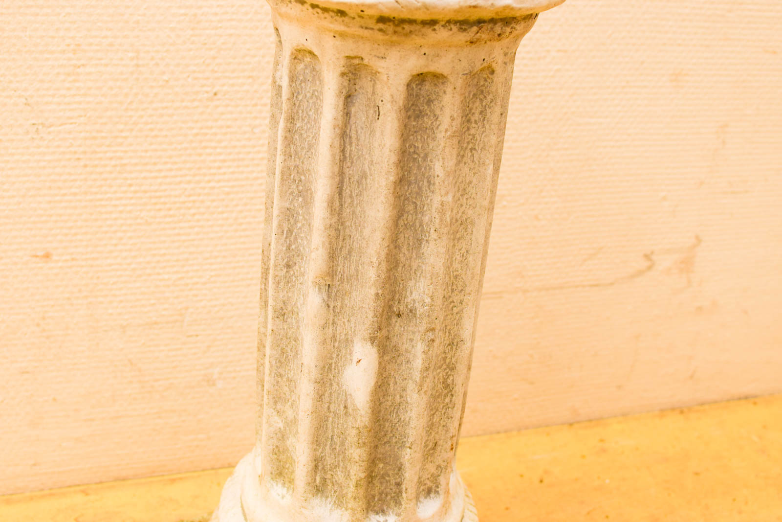 de zuil heeft groene aanslag diameter bovenkant 16,5 cm hoog 47 cm de zuil is zwaar