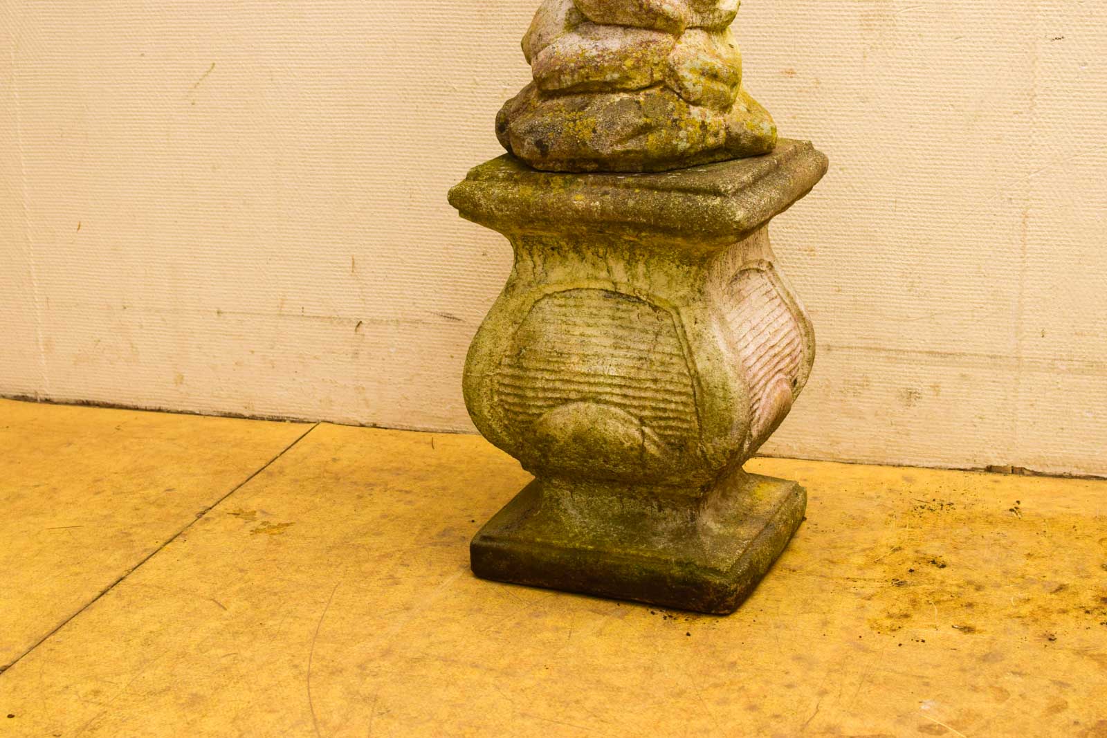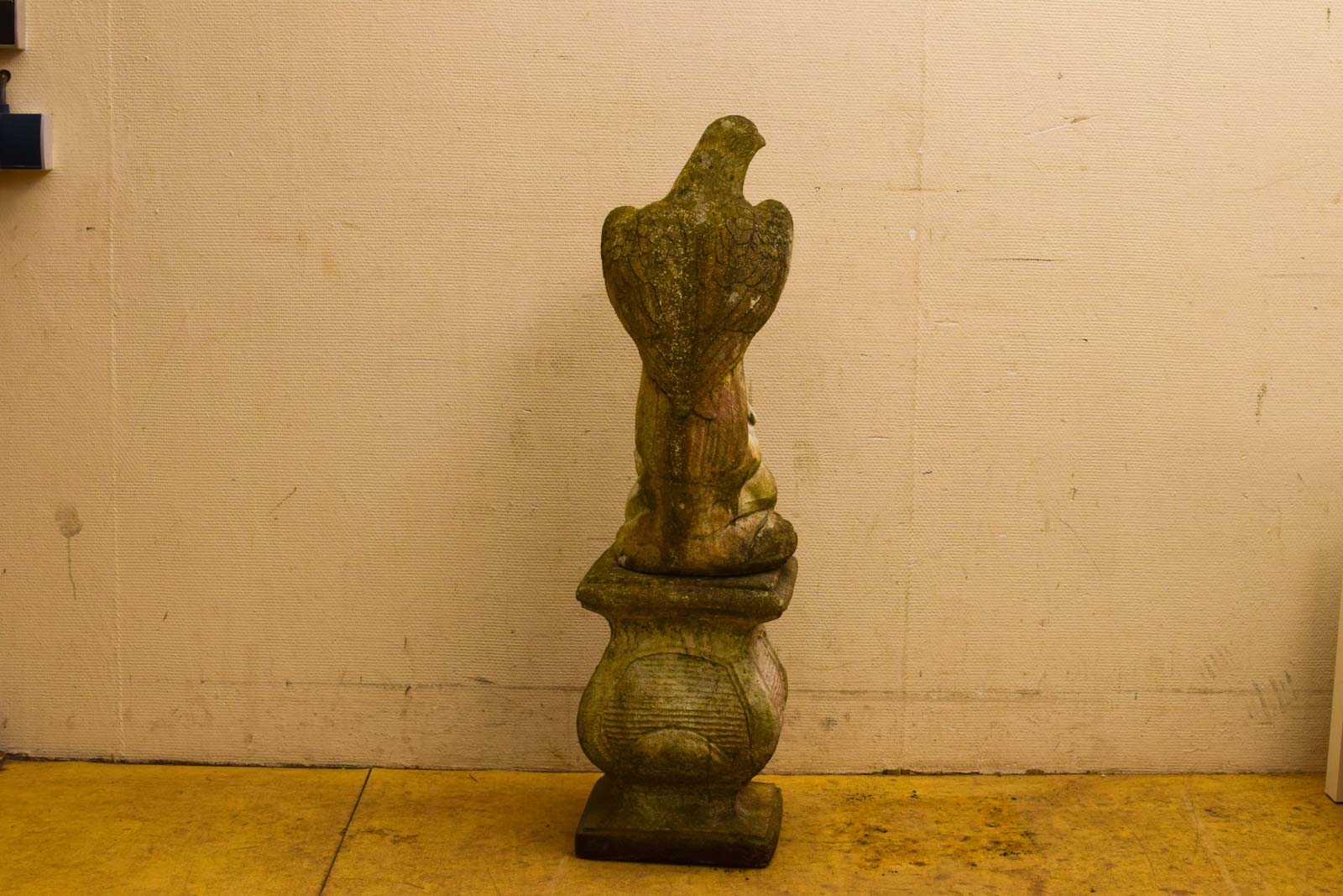 Let op bij aankoop: het onderstuk en de roofvogel zitten los op elkaar en kunnen apart verplaatst worden. Bovendien ontbreekt er een klein stukje aan het sculptuur. Dit zijn punten die je moet meenemen in je verwachtingen. Ondanks deze gebruikssporen blijft het een interessant piece voor wie van klassieke tuindecoratie houdt en hier mee om kan gaan.