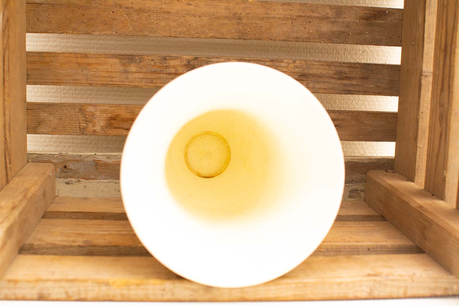 krassen aan de binnenkant en de bodum heeft wat bruine aanslag bovenopening van de vaas 16 cm