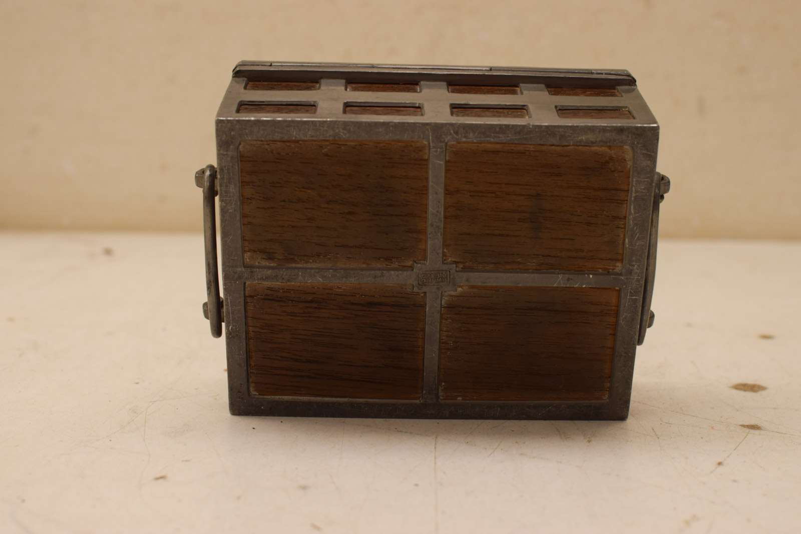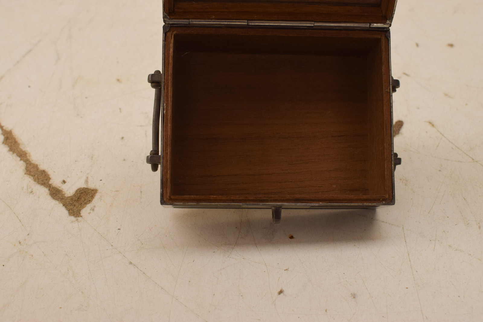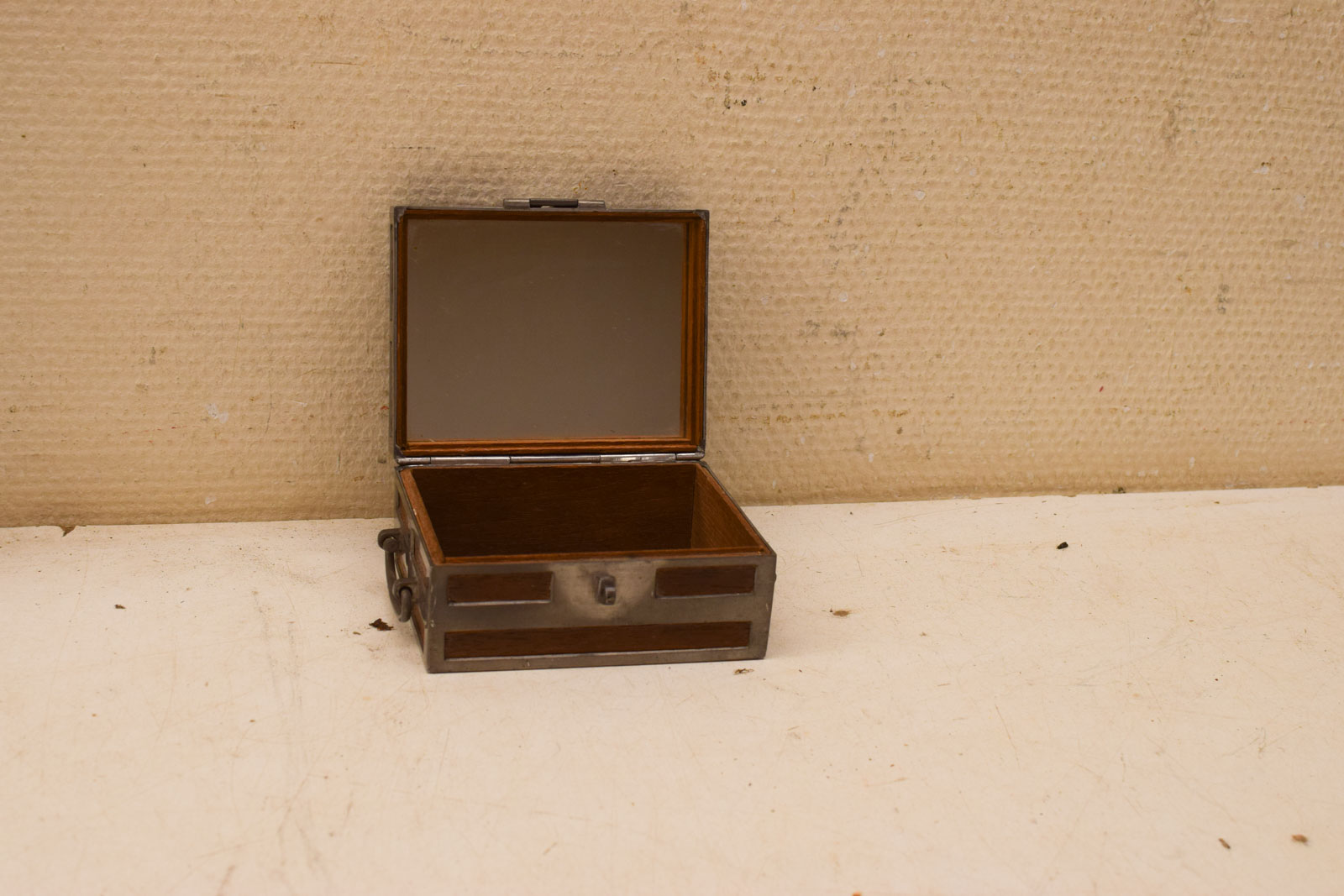 is geen slot bij het doosje is gebruikt / gebruikssporen het spiegeltje binnenin is dof en heeft krassen breed 11,5 cm diepte 9 cm hoog 5 cm