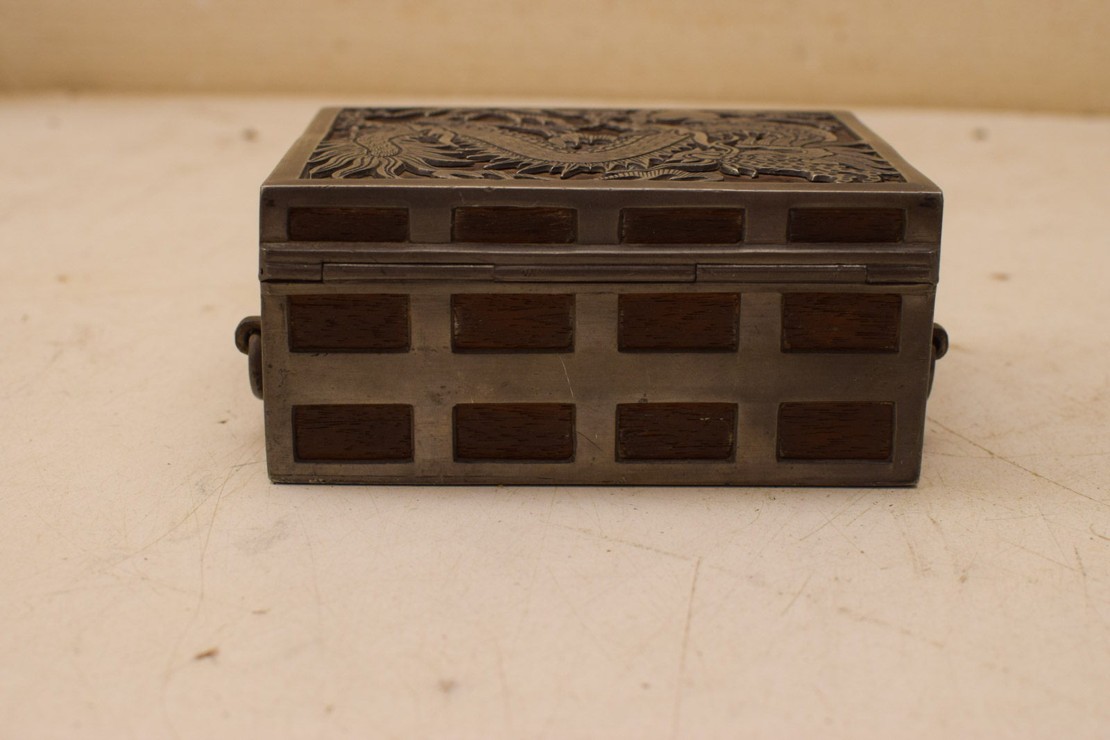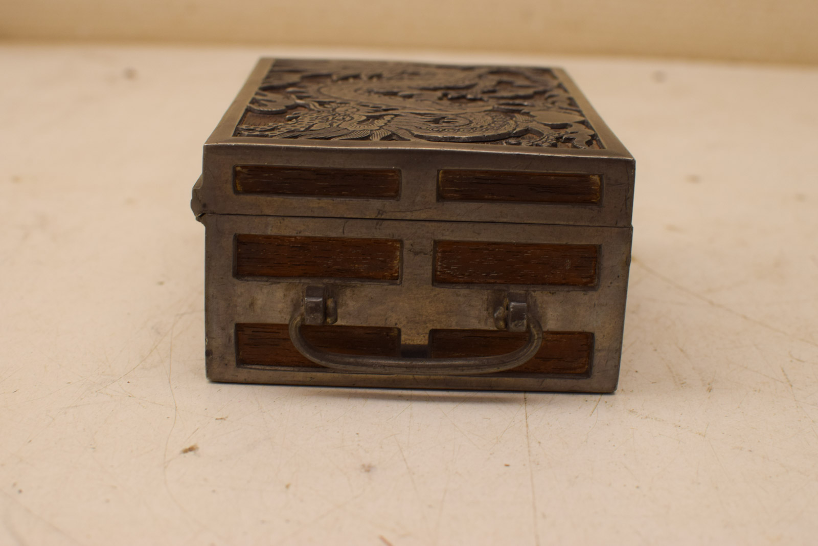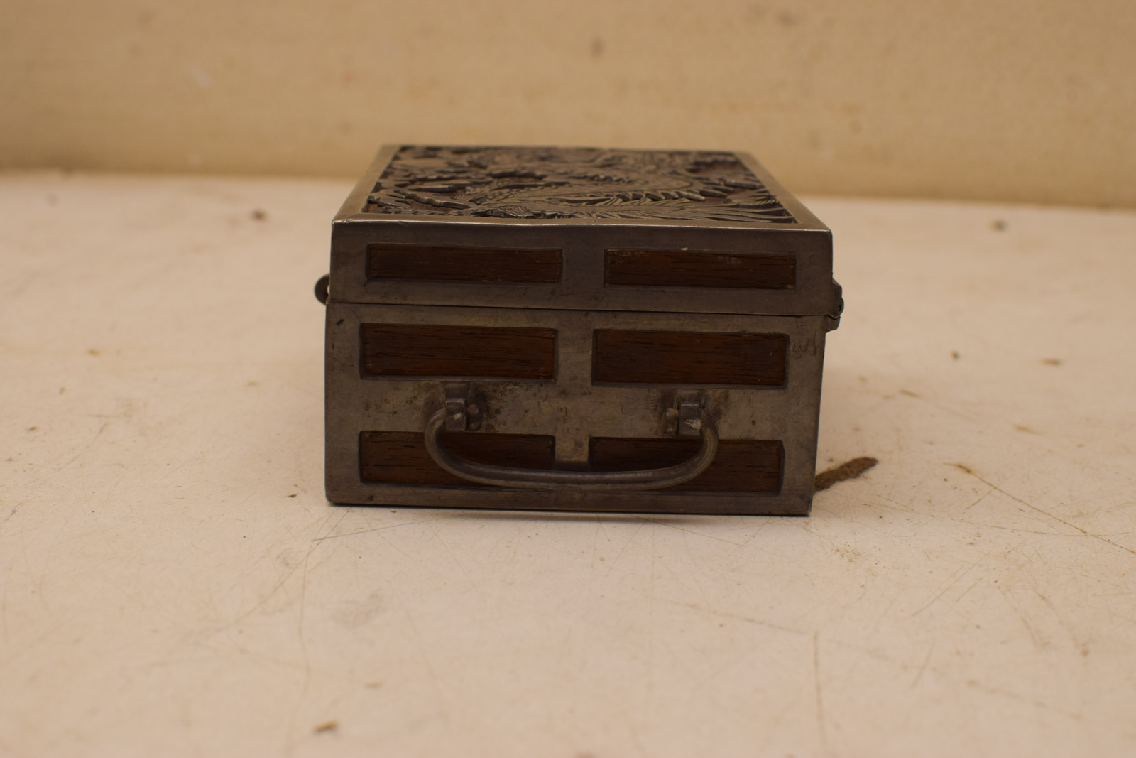 is geen slot bij het doosje is gebruikt / gebruikssporen het spiegeltje binnenin is dof en heeft krassen breed 11,5 cm diepte 9 cm hoog 5 cm