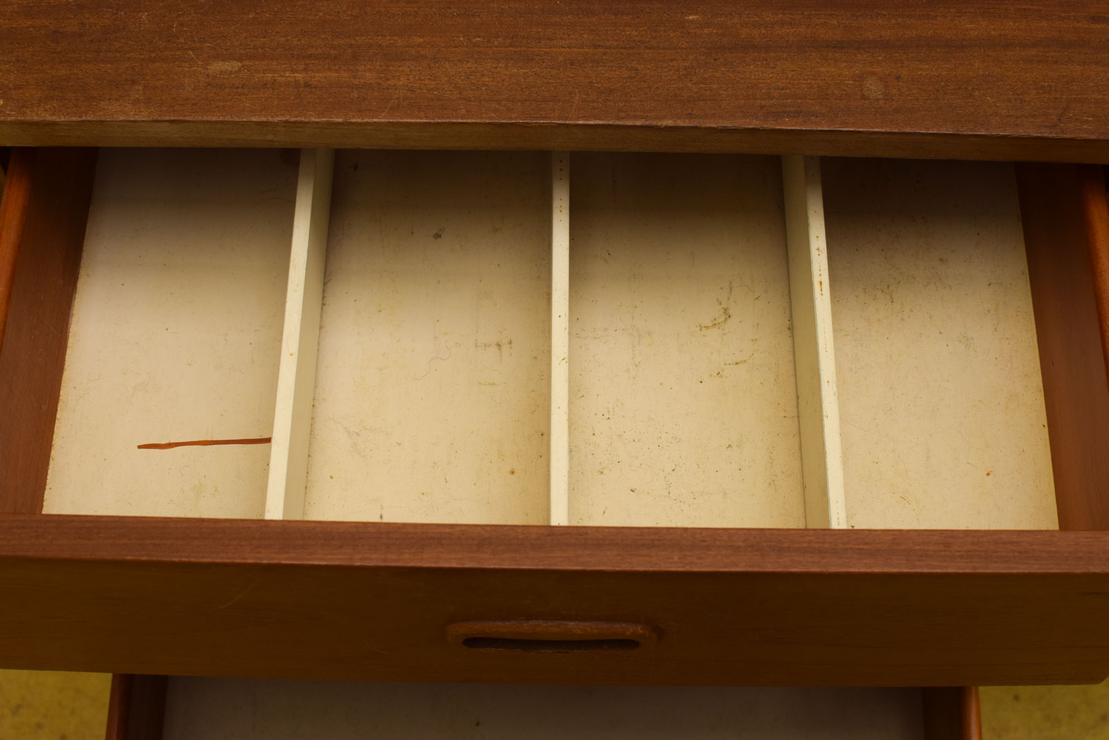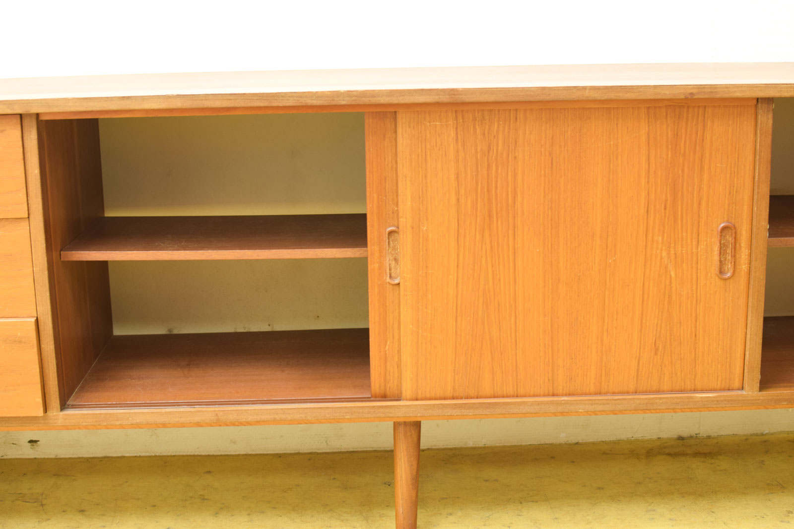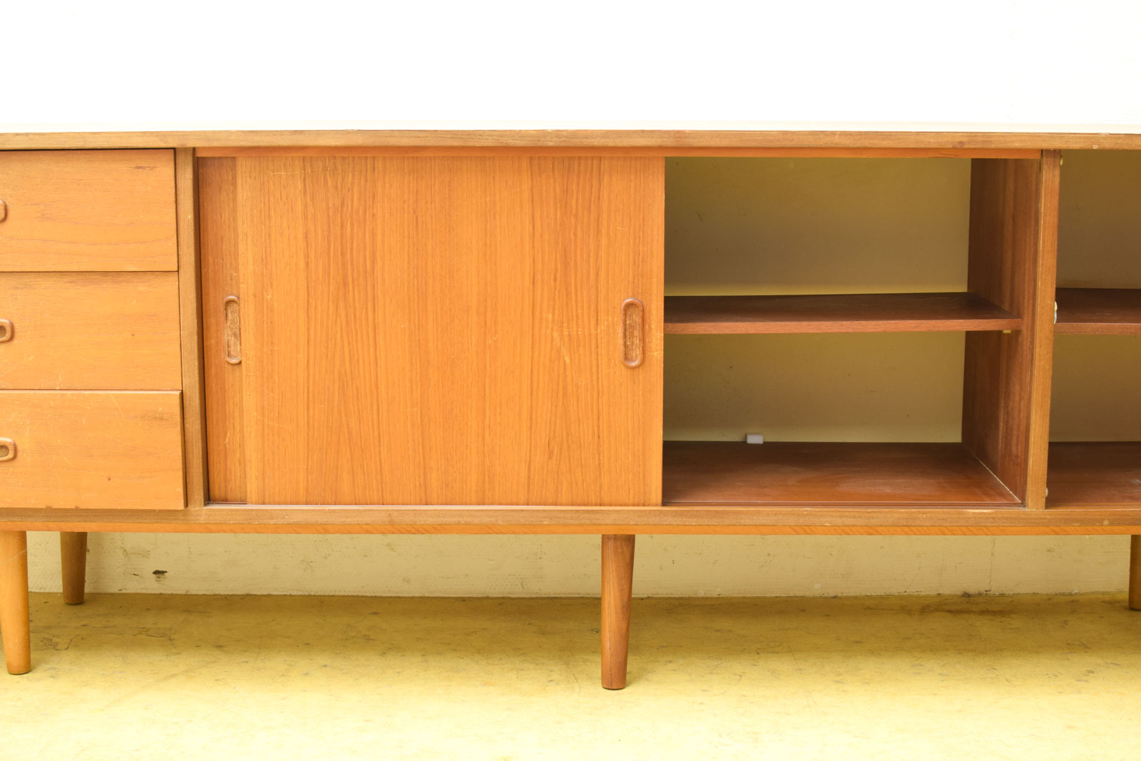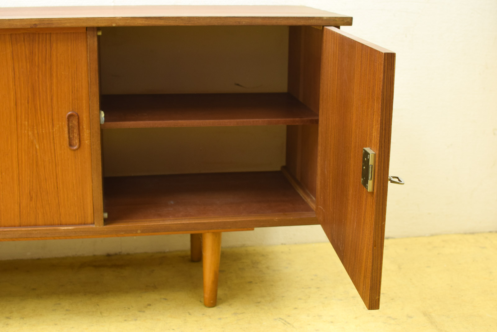 het is een laag model de dressoir heeft gebruikerssporen maar is nog heel er is een sleutel bij de kast
