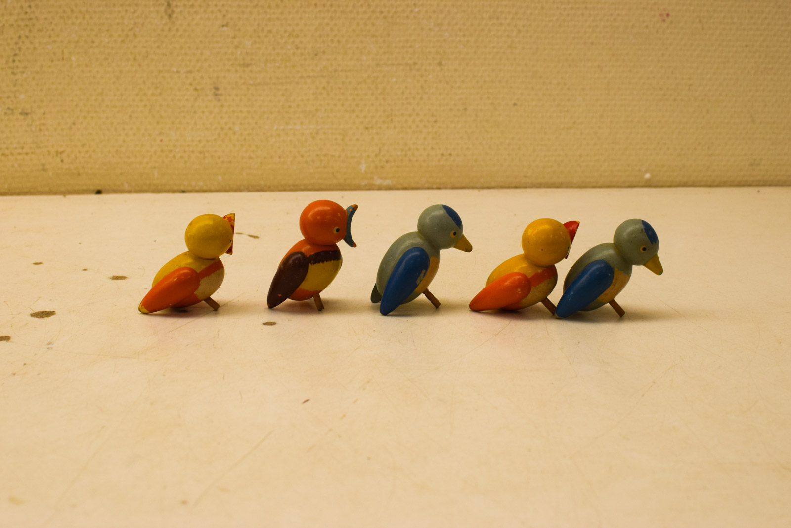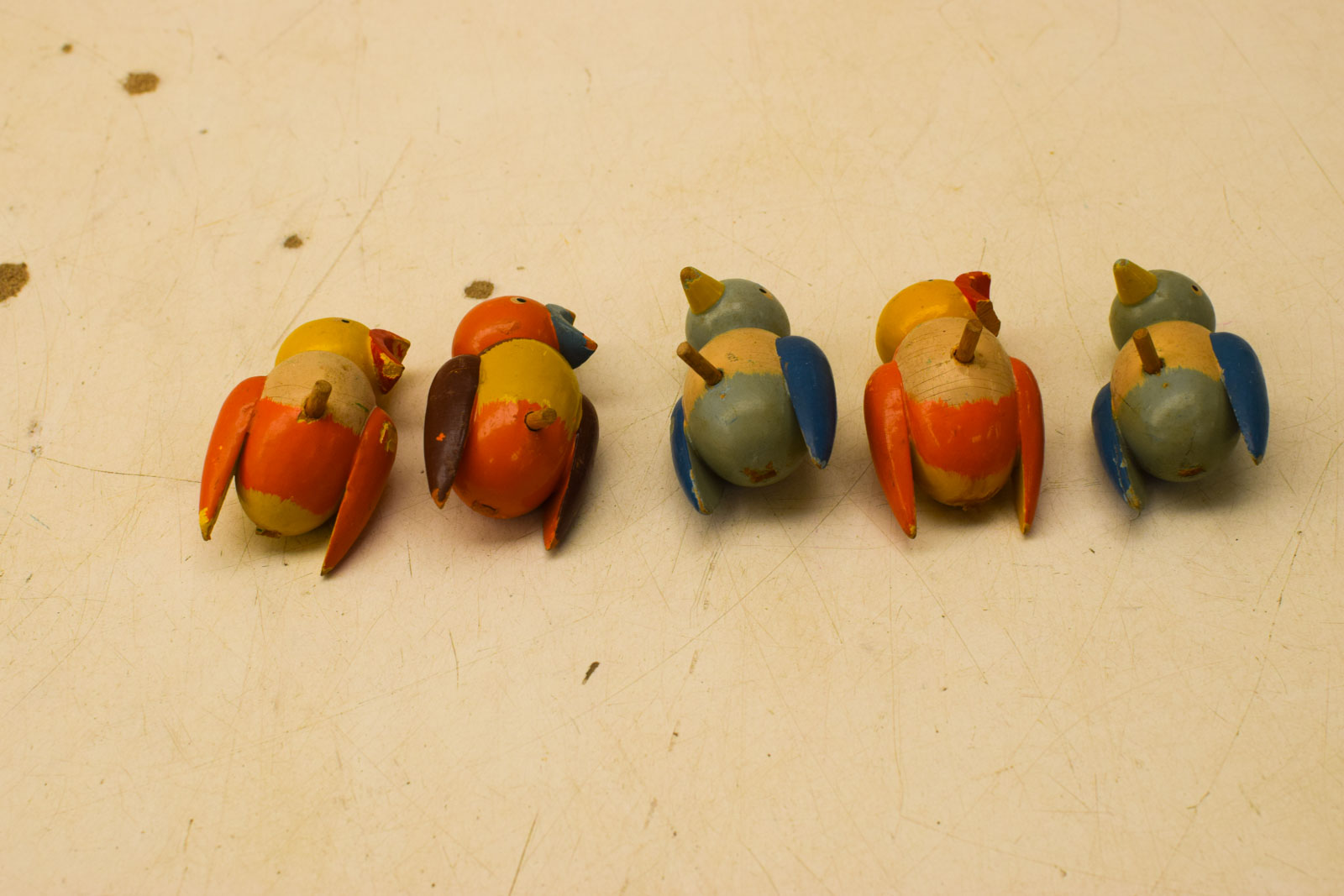 onderkant heeft een stokje het houten vogeltje heeft gebruikssporen