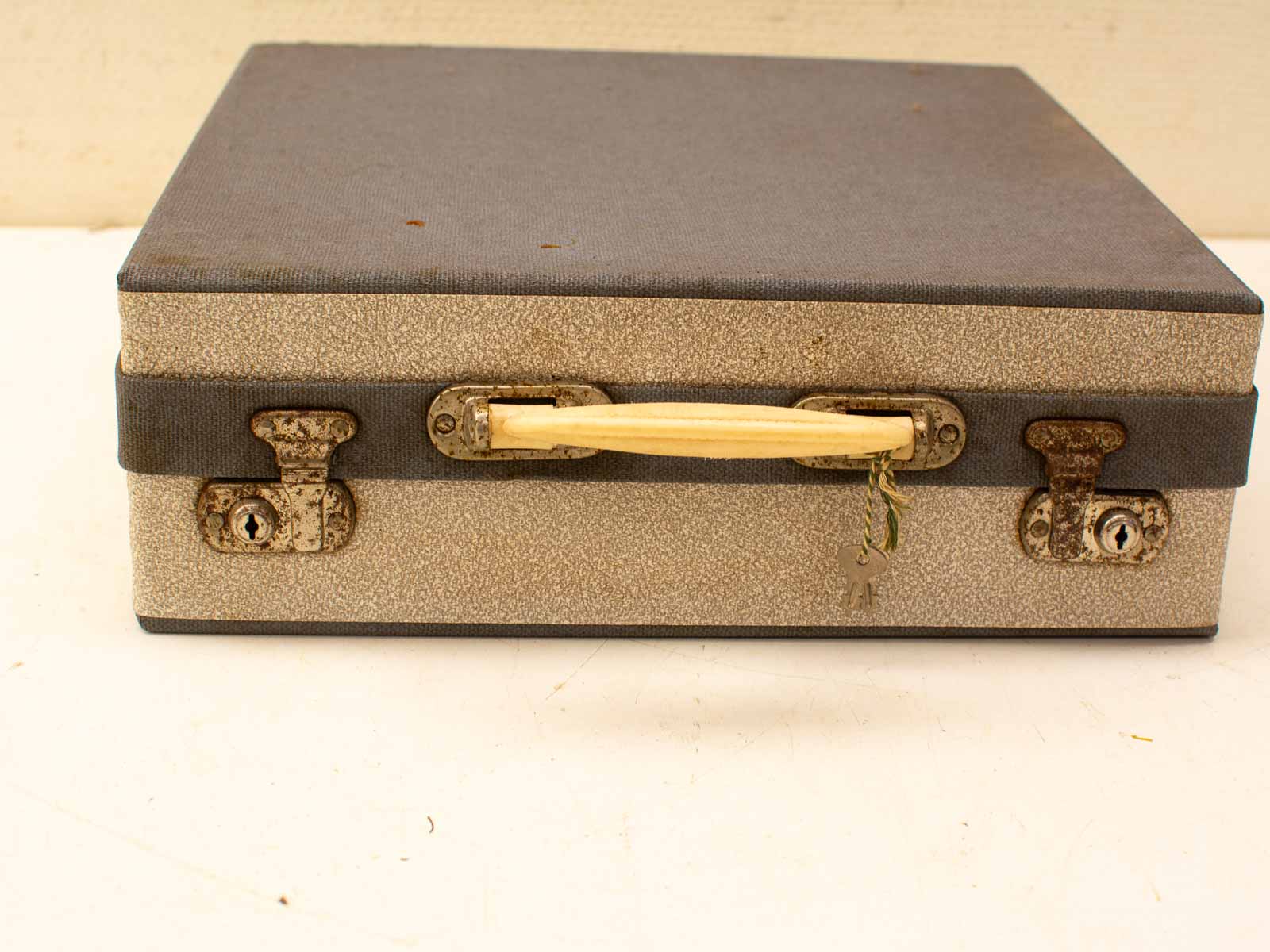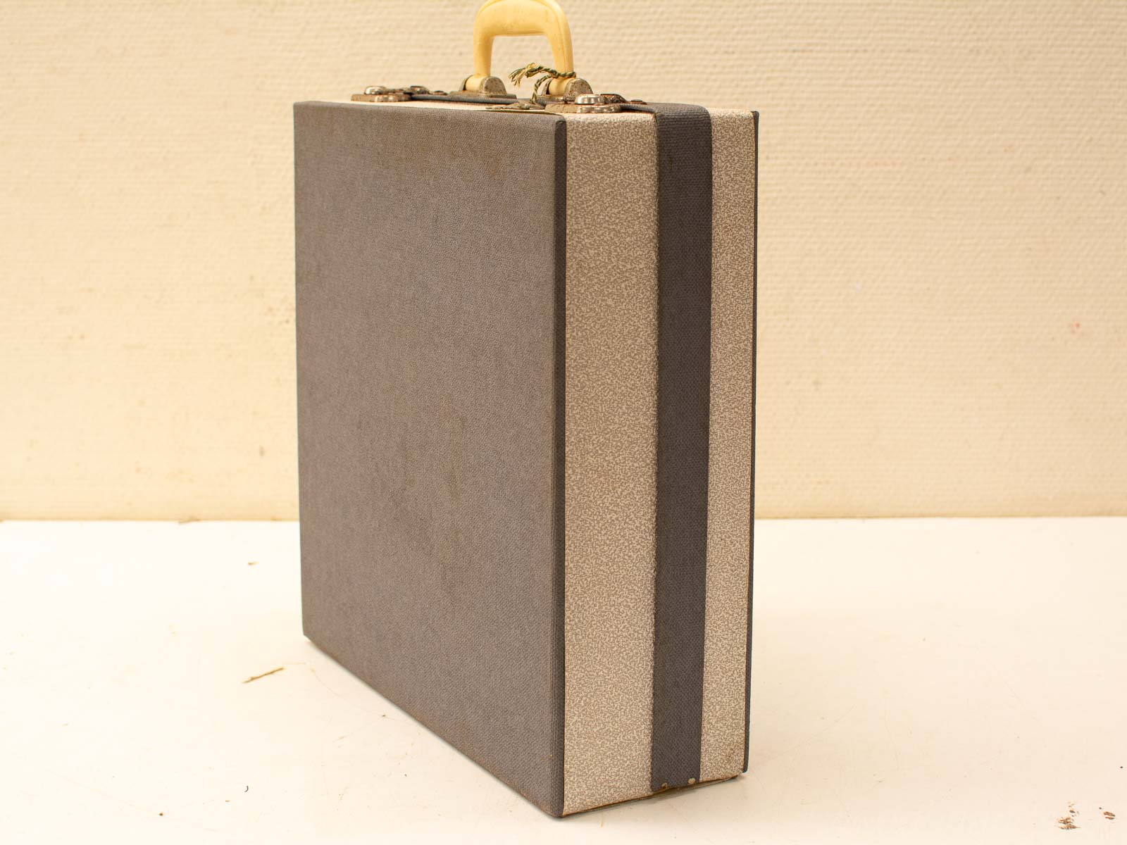 er is ruimte voor 23 lp de koffer is gebruikt en heeft gebruiksporen de deksel sluit niet goed dicht zit een sleutel bij
