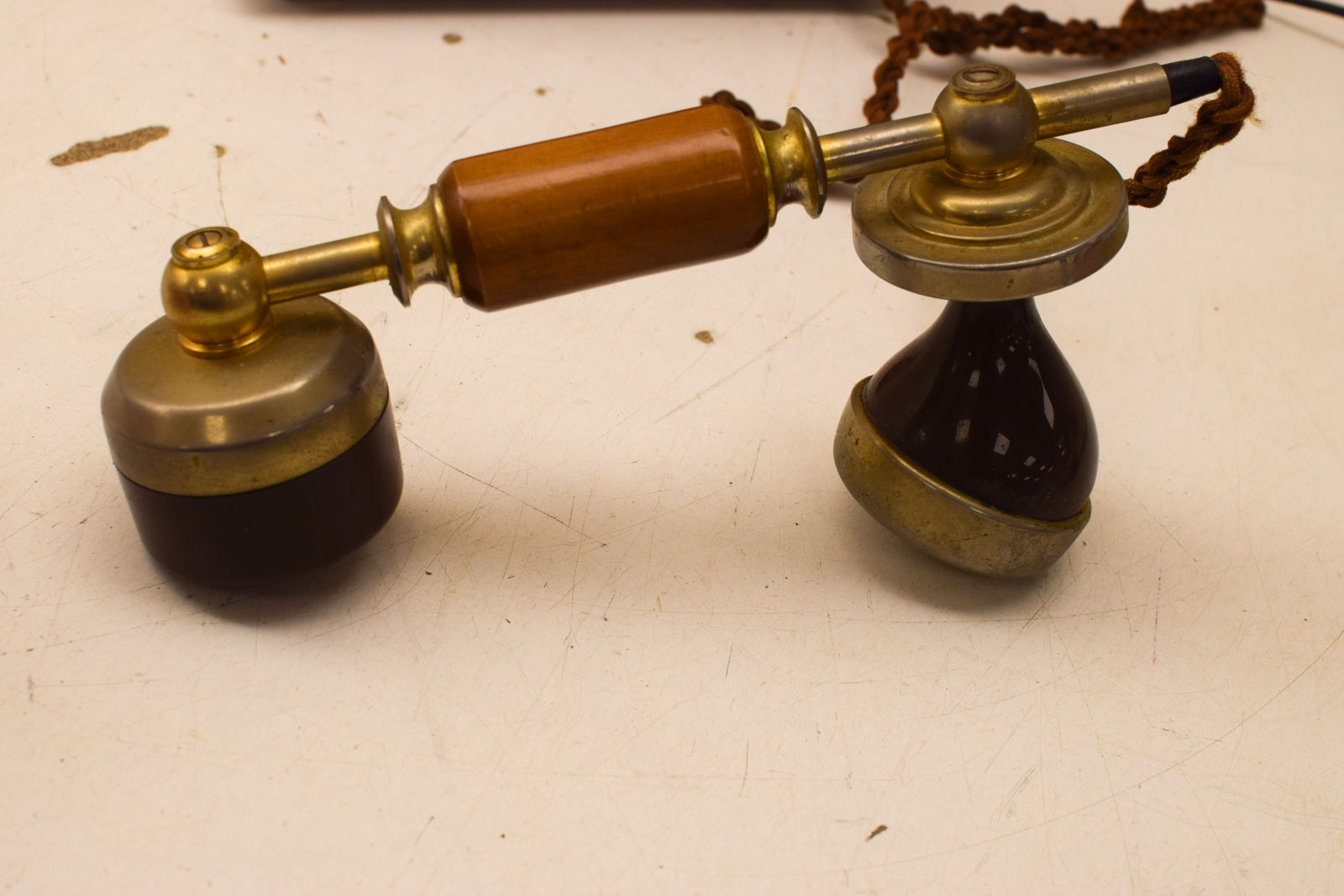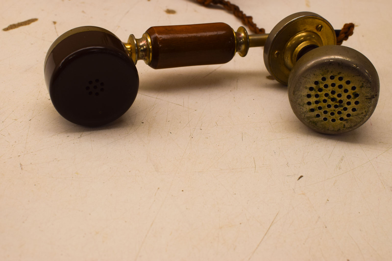 het hout van de telefoon heeft gebruikssporen bv krasjes maar is nog heel en ziet er redelijk uit de telefoon is niet getest de hoorn heeft gebruikssporen en vlekken alleen het hout gemeten hoog 10,5 cm
