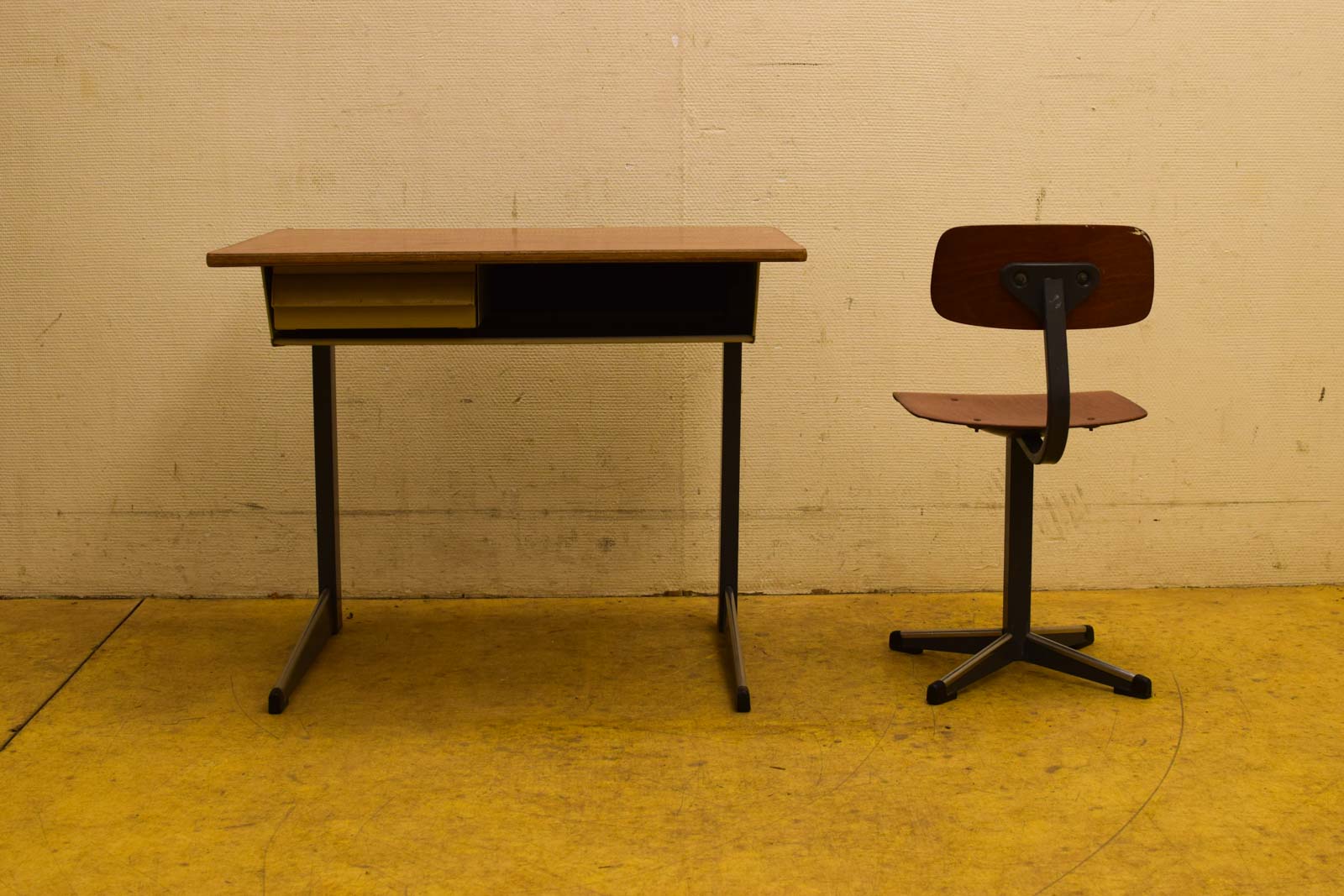 het setje is gebruikt en heeft gebruikssporen maar is nog heel en stevig de tafel heeft nog een plastic lade de tafel gemeten breed 70 cm diepte 50 cm hoog 56,5 cm het stoeltje gemeten breed 30 cm diepte 26 cm hoog 58,5 cm zithoogte 35,5 cm