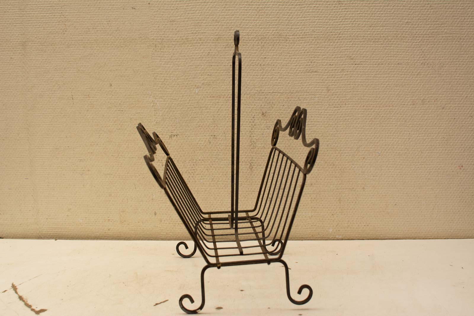 de tijdschriftenrek is van metaal heeft wat roest en gebruiksporen