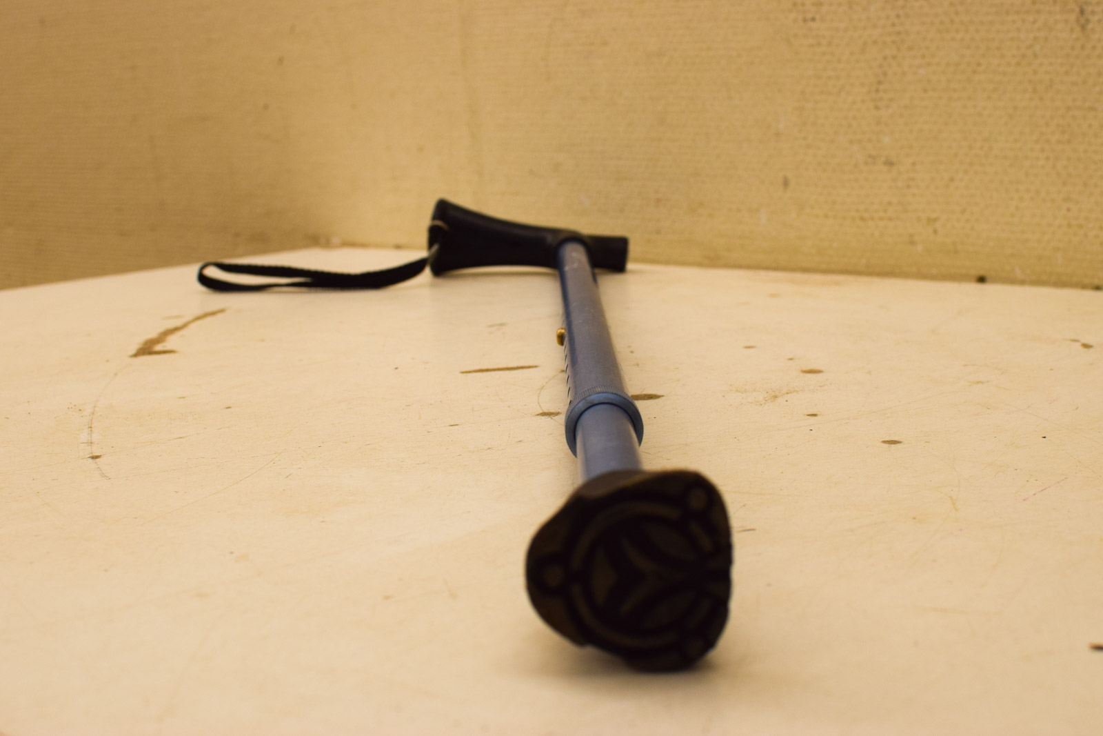 de wandelstok is gebruikt en heeft gebruikssporen zoals krassen de wandelstok is in hoogte te verstellen