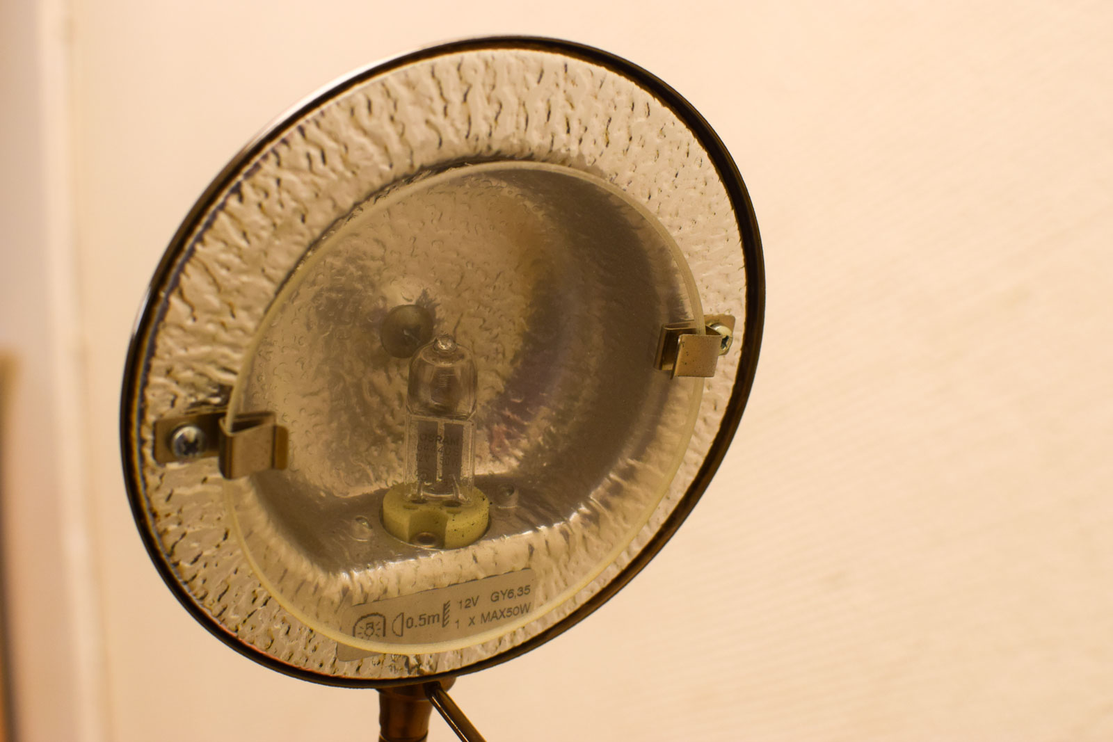 de arm van de lamp kan buigen de vloerlamp is gebruikt en heeft gebruikssporen