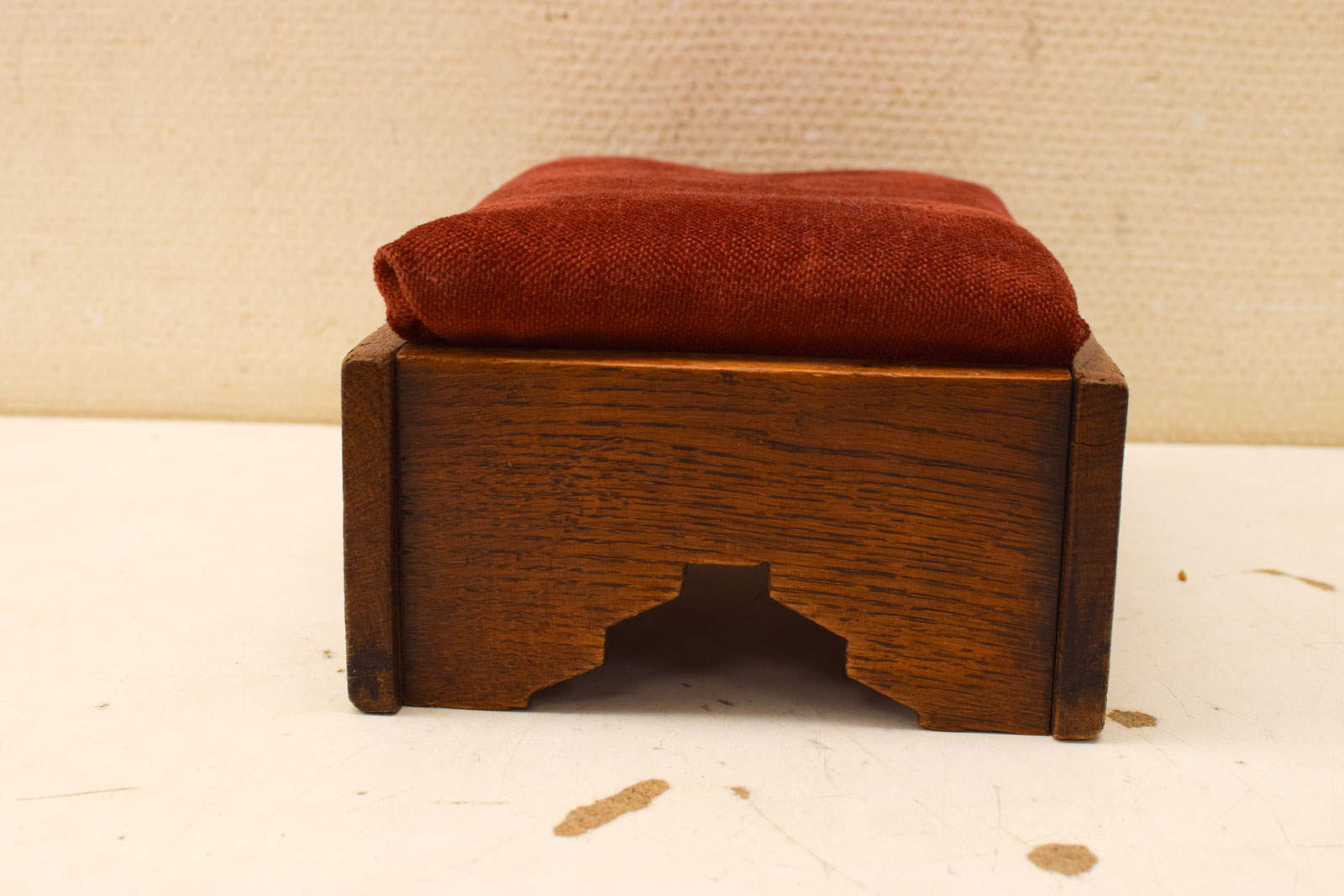 Dit houten voetenbankje is een praktisch en compact meubelstuk met een wat rustieke uitstraling. Het bestaat uit een stevige houten basis met een afneembaar rood kussen bovenop. Het voetenbankje meet 30 centimeter in de breedte, 19 centimeter in de diepte en 10 centimeter in de hoogte, wat het ideaal maakt voor kleinere ruimtes of als aanvulling op bestaande zitmeubelen.