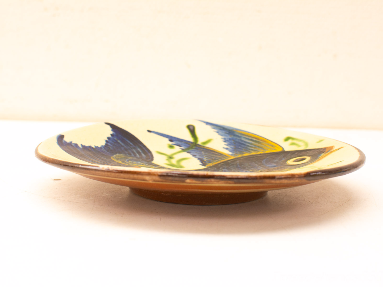 met een prent van een blauwkleurige vis diameter van het bord 27,5 cm