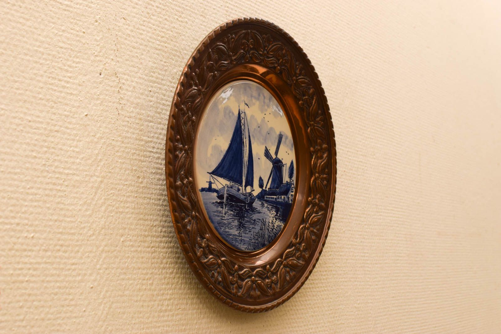 de bord gedeelte is van porselein en heeft een prent van een boot en van een molen diameter 30 cm