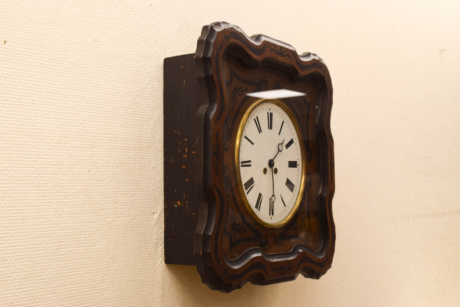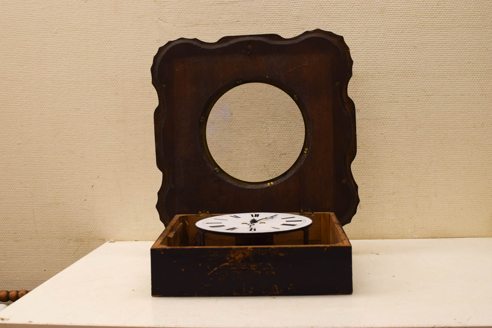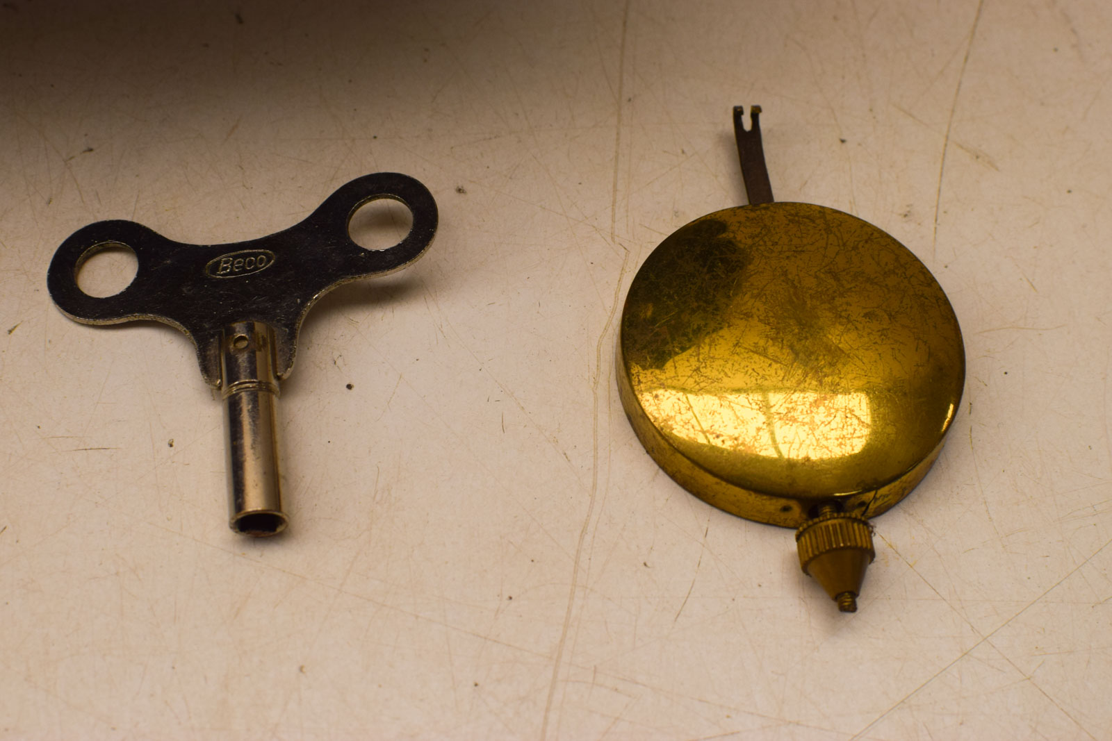 de klok is loop of sloop het hout heeft gebruikssporen is een sleutel en slinger bij