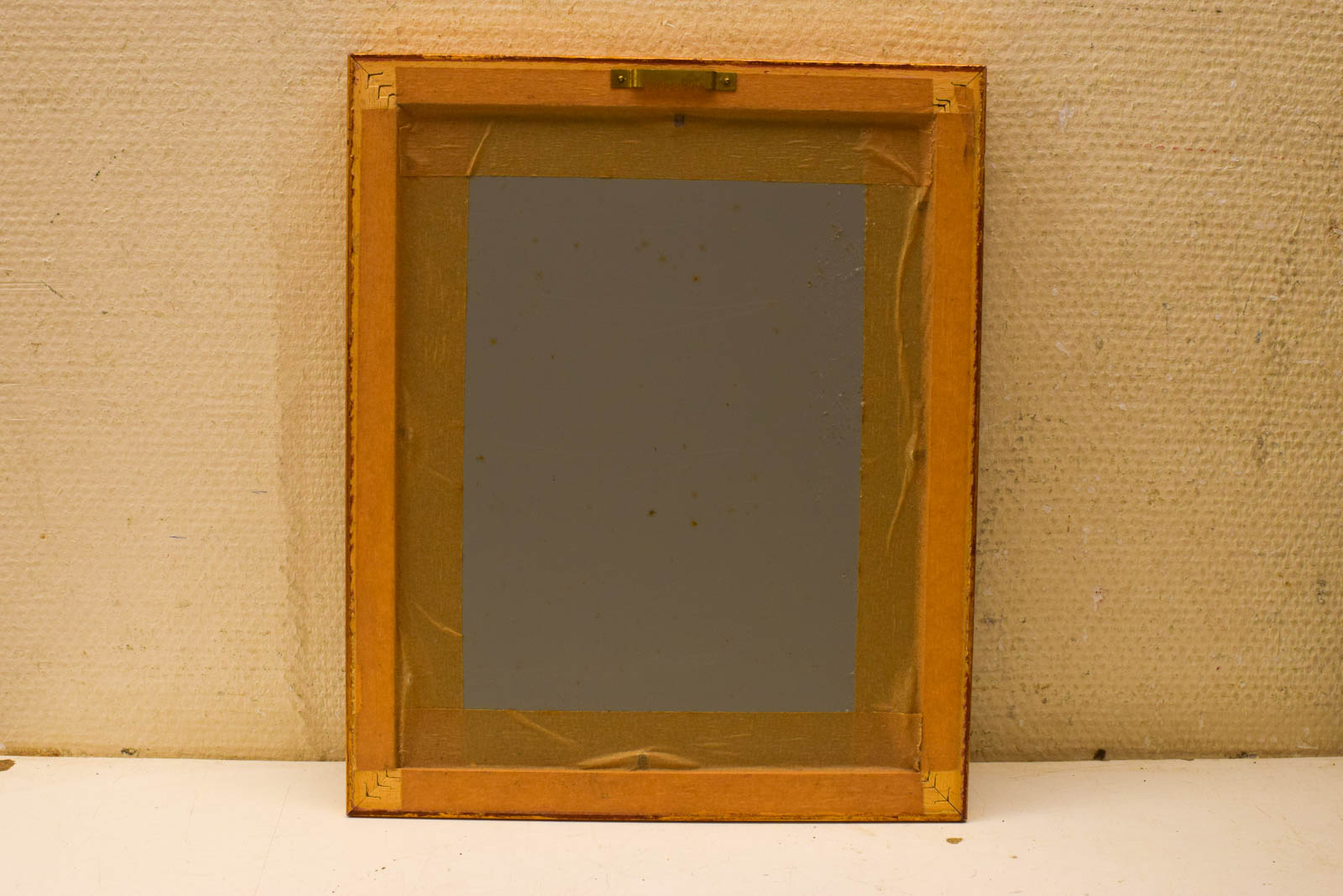 de spiegel heeft wat krasjes en is wat dof de lijst heeft lichte gebruikssporen maar is nog heel hoog 34,5 cm