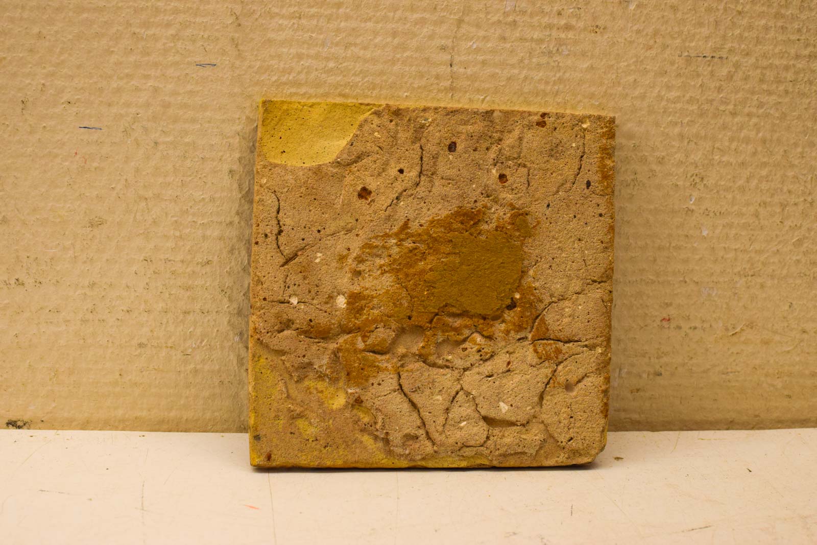 in de hoek mist de wandtegel een stukje breed 12,5 hoog 12,5 cm